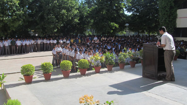 A special Assembly was organized to pay homage to the great leader at school . After the address by the Principal a two minute silence was observed. Teachers and students reminisced his achievements and their experiences with him.