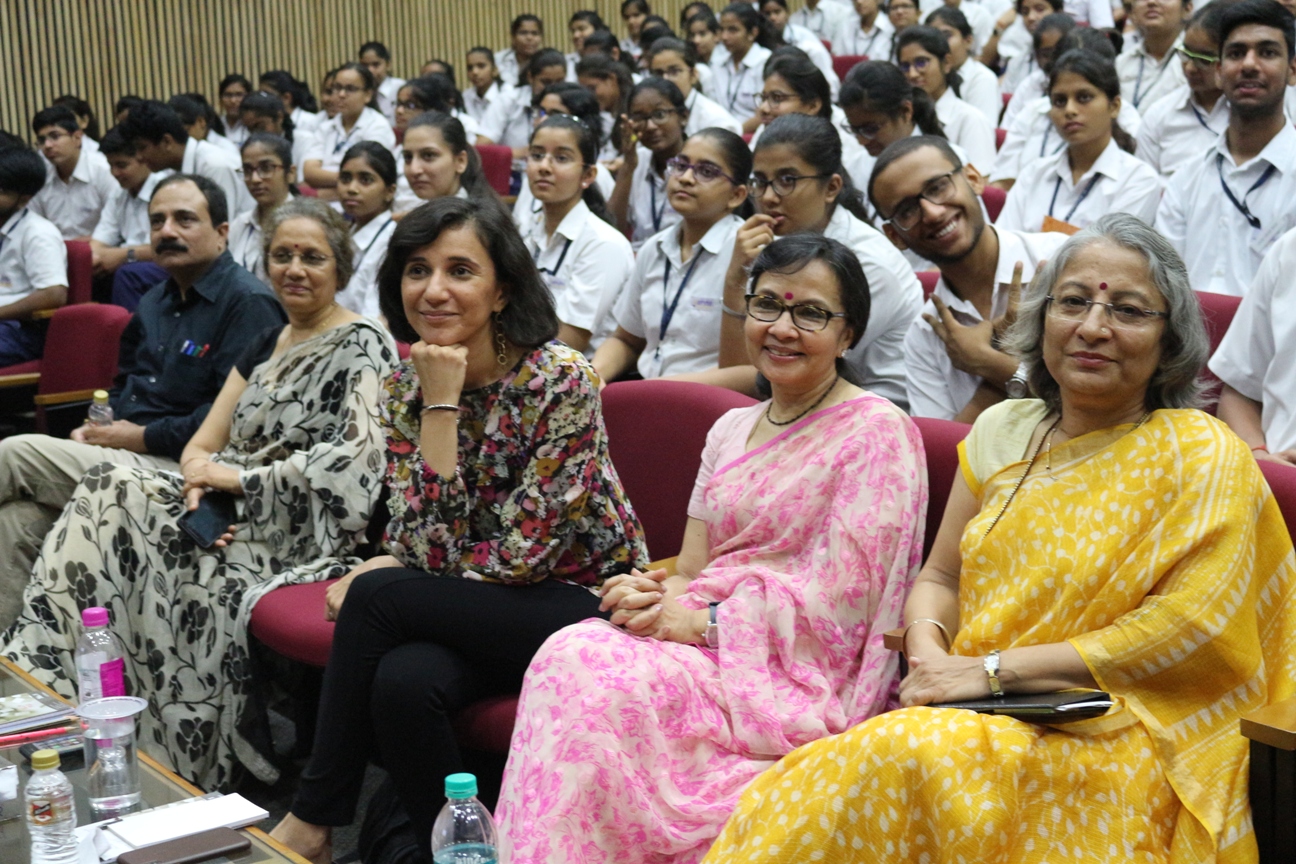 A lady who has been a catalyst of positivity, innovation , creativity and capability building. Mrs. Manu Juneja, a creative, determined, fun loving and an accomplished lady at a young age who has risen to such a recognizable level was at Seth M.R. Jaipuria School on 7th July, 2018. The students of classes 9 – 12 had a very engrossing session where Ms. Juneja shared her experiences on promoting skill based opportunities and programmes around the world.Ms. Juneja, has been an engineer, engineer to build bridges of awareness, communications and chrysalis. The students had a question answer session where in Ms. Juneja spoke about crafted programmes for confidence building, relationship enhancement, communication techniques. Ms. Juneja, winner of CEO’s excellence Award for the creation and execution of Spirit of Humanity Awards and many more awards, was a pleasure to be among us who shared with the students how education unites opportunity with excellence.We thank Ms. Juneja to having spared her time to be with the students who surely benefited to take on the challenges of life, making resolutions with determination to turn their dream into reality.