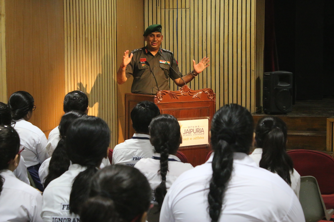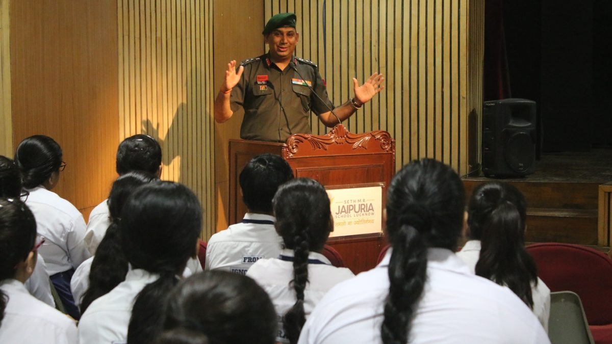 The Nation paid homage to its brave heart soldiers on the Kargil Martyrs day on 26th July, 2018. Its been 19 years when the conflict began with the infiltration of both Pakistani troops and terrorists into Indian territory. Seth M.R. Jaipuria, remembered as Kargil Vijay Diwas, saluted the martyrs. On this occasion the school joined together to salute the spirit of every Armed Forces personnel. Col. Vikram Kadian was the guest speaker who shared an incident of his life spent together in Kargil with Capt. Manoj Pandey, a resident of Lucknow and a Paramveer Chakra awardee (posthumously). It was a proud moment for each one of us to listen to Col Kadian about the heroes of Kargil war.