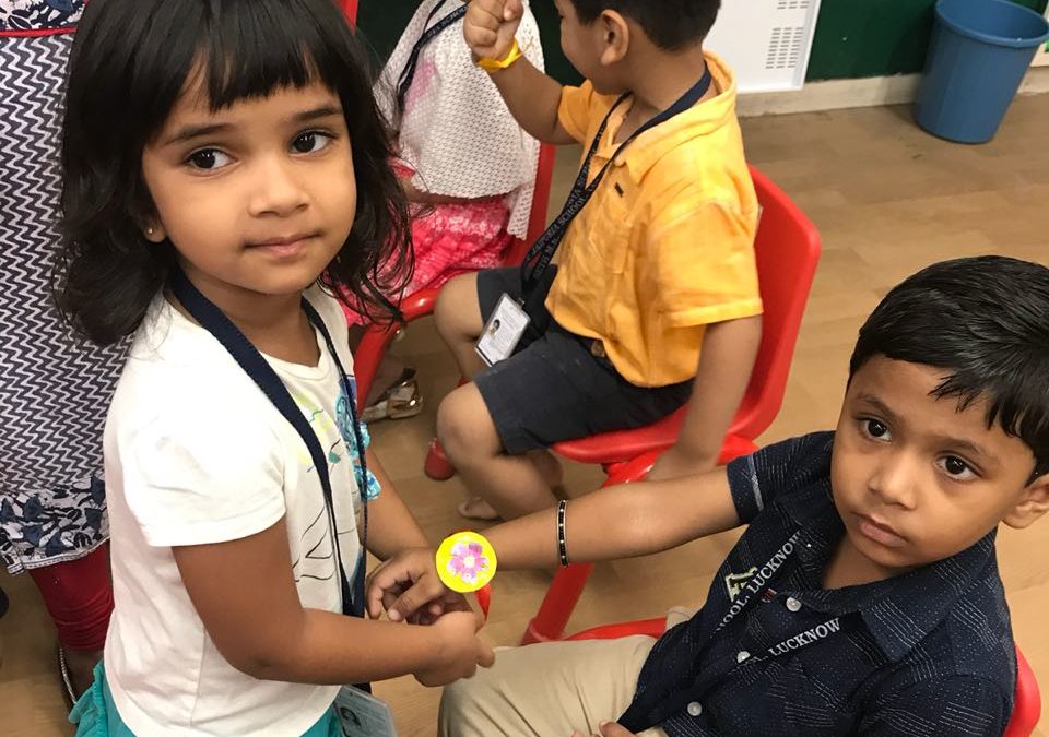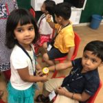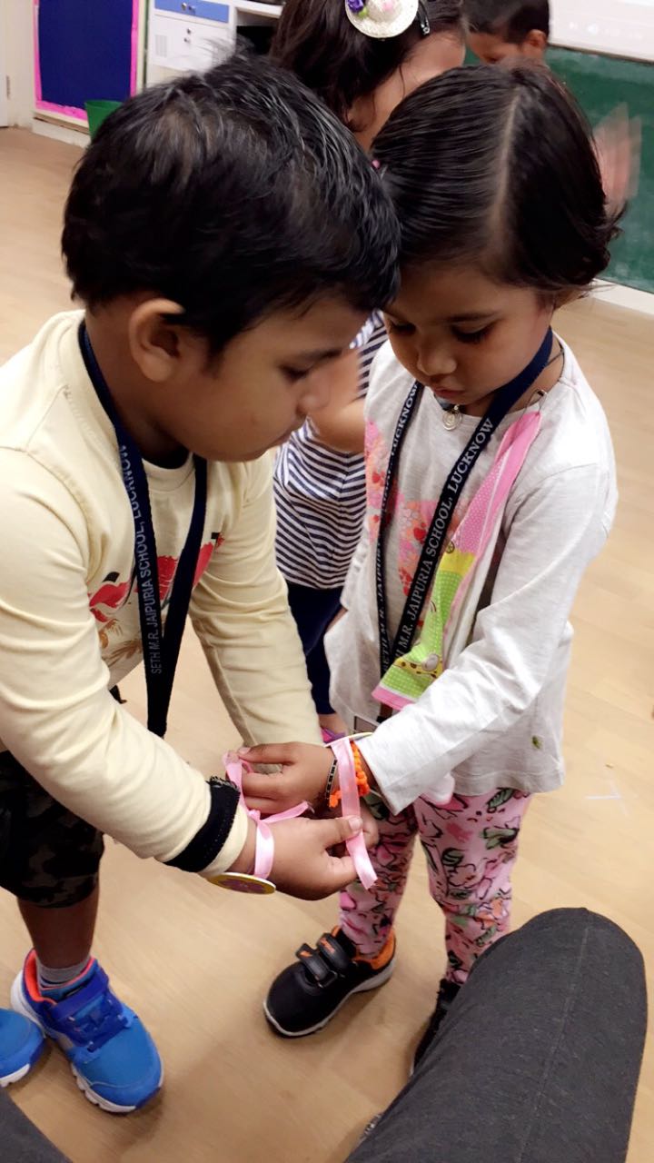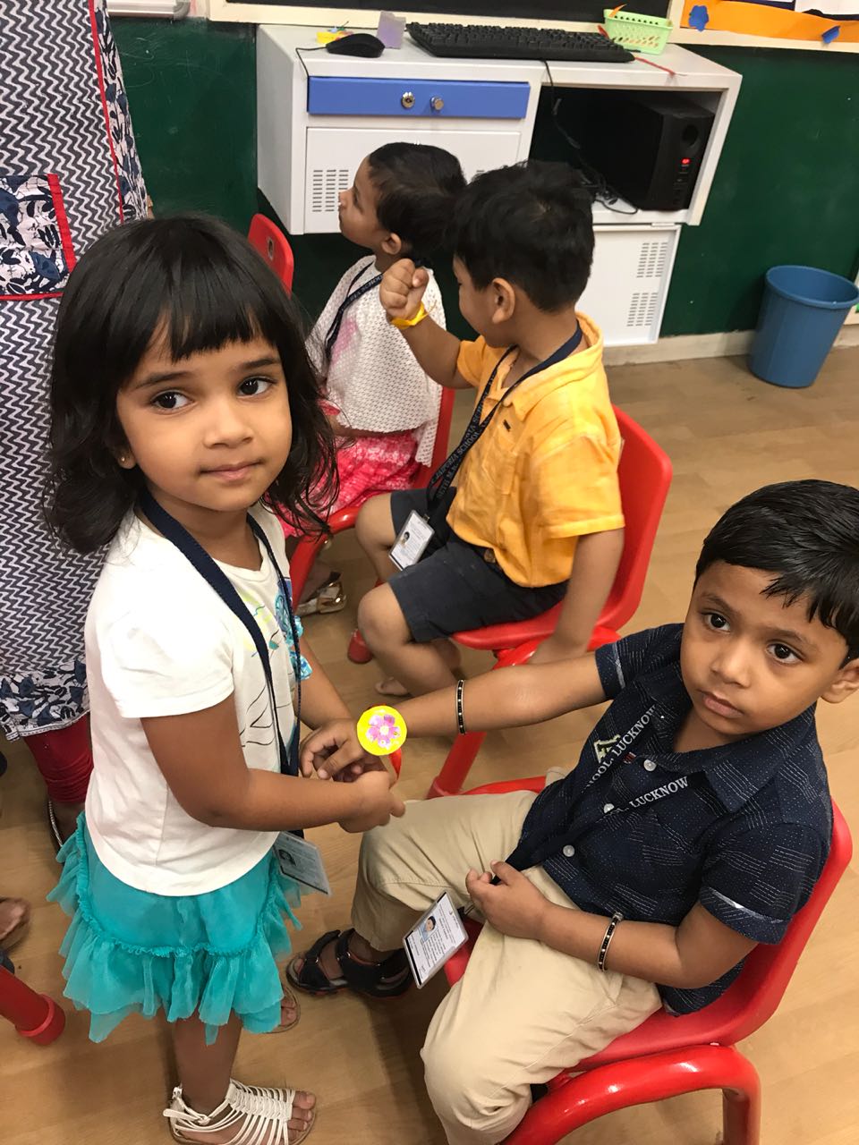 The teachers of the Playgroup section spoke to the little ones about the festival of Raksha Bandha. The children made ‘Rakhis’ in class using paints and Periwinkle flower petals. They were told about tying Rakhi and exchanging gifts with their brothers.