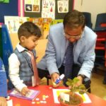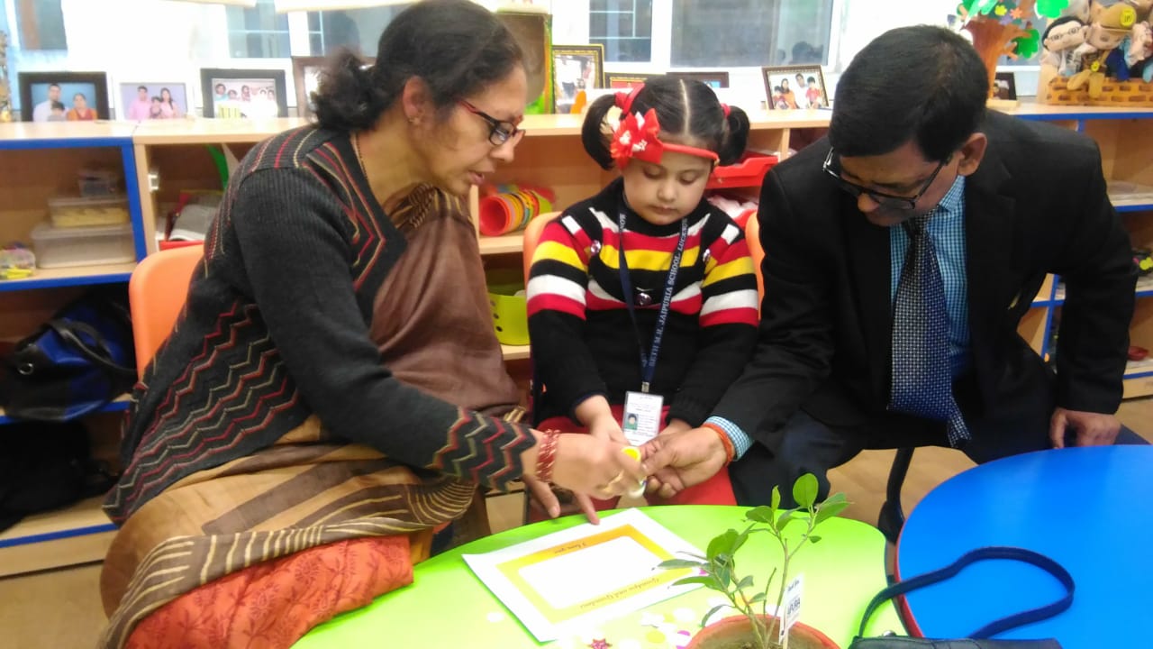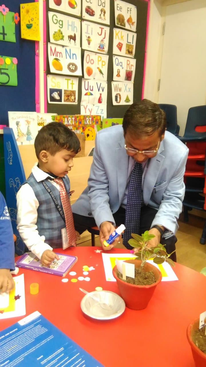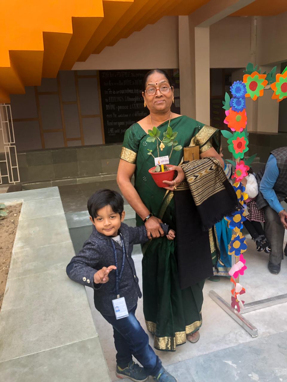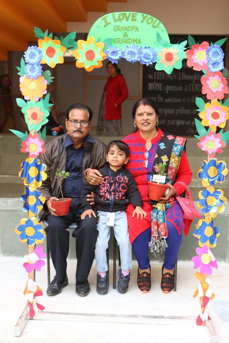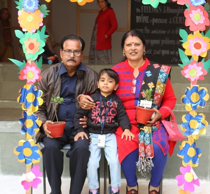 The function started with welcoming the grandparents by the Principal’s address, wherein the Principal stressed the importance of the grandparents who are delightful blends of laughter, caring deeds, wonderful stories and love.The programme began with the Playgroup students’ welcome song performance followed by rhymes and songs.More than the kids the grandparents were seen enthusiastic to share their thoughts. The grandparents recited poems and read articles. Grandparents love to transform themselves in a small child.This was evident when they joined their grandchild in decorating paper frames and pasted their grandchild’s picture.The day concluded when the Grandparents along with their grandchild planted saplings in a pot. As a token of gratitude the grand parents were given the same pot as a take home present.