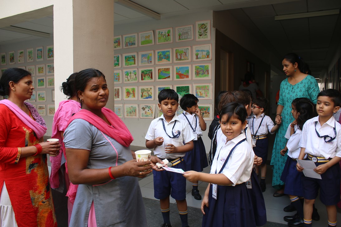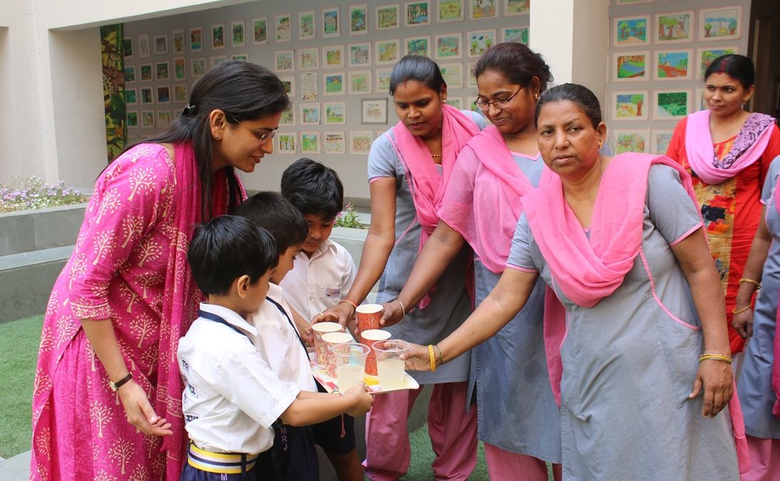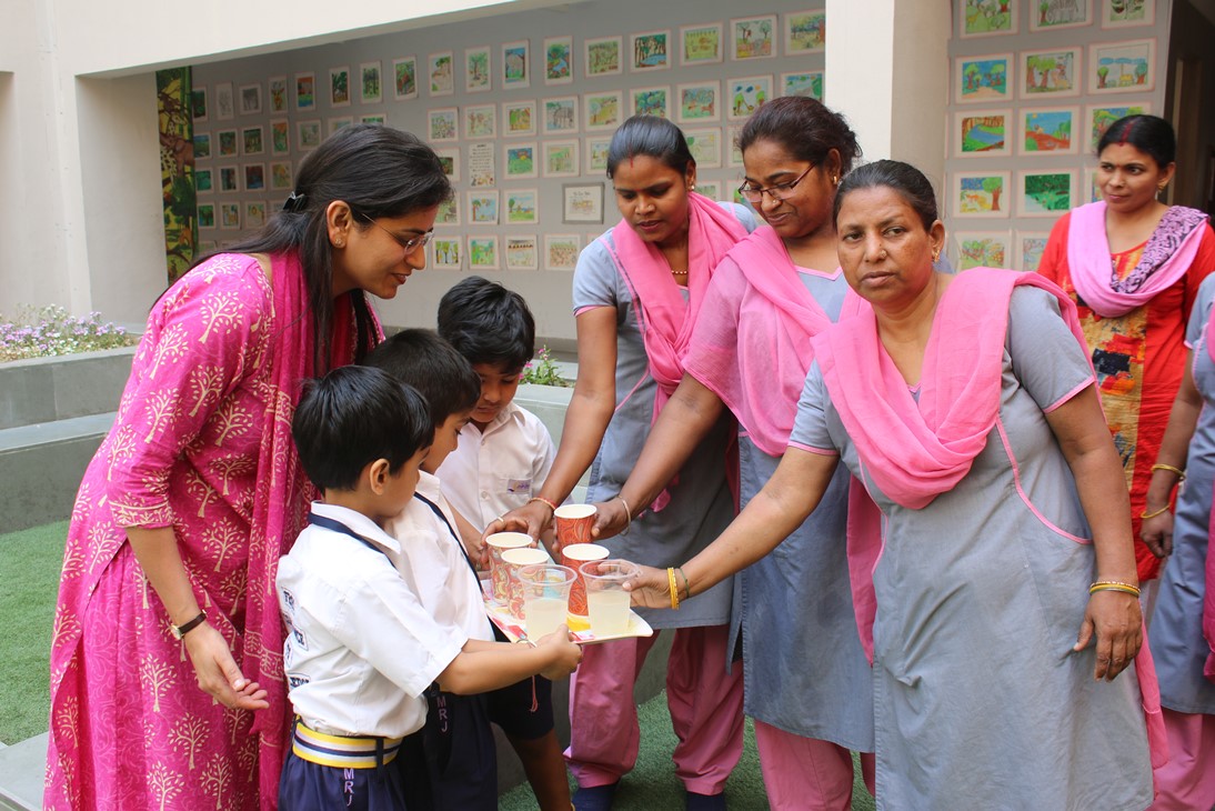 The pre-primary students of classes LKG, UKG and class 1 celebrated Labour Day in school on Wednesday, May 1. The students made sandwiches using bread and jam spread as well as freshly squeezed lemonade which they served to the helping staff of the school. They learned about the concept of the day and the importance of being thankful and expressing gratitude. The celebration of Labour Day is marked as an occasion to show gratitude towards the ones who make our daily life easier by their sheer hard work and dedication.