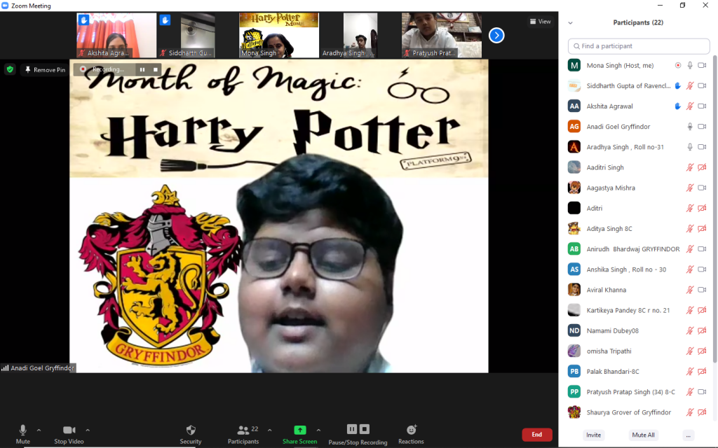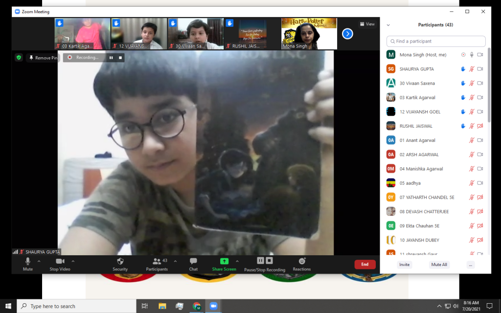 To make the library period more fun for our Middle School students, we have a dedicated theme for each month. July is the birthday month of everyone’s favourite wizard – Harry Potter and what better way to celebrate this character than to dedicate an entire month to the wonderful world of wizards & witchcraft given to us by the author J K Rowling. Thus, the month of July became our Harry Potter Month – the month of Magic! The response received by all the classes for this theme was overwhelming. Students not only enjoyed reading the Harry Potter books but were also eager to share their own ideas and views on them. Other interactive activities like quiz and games were also conceived by the students;  they also performed short skits.