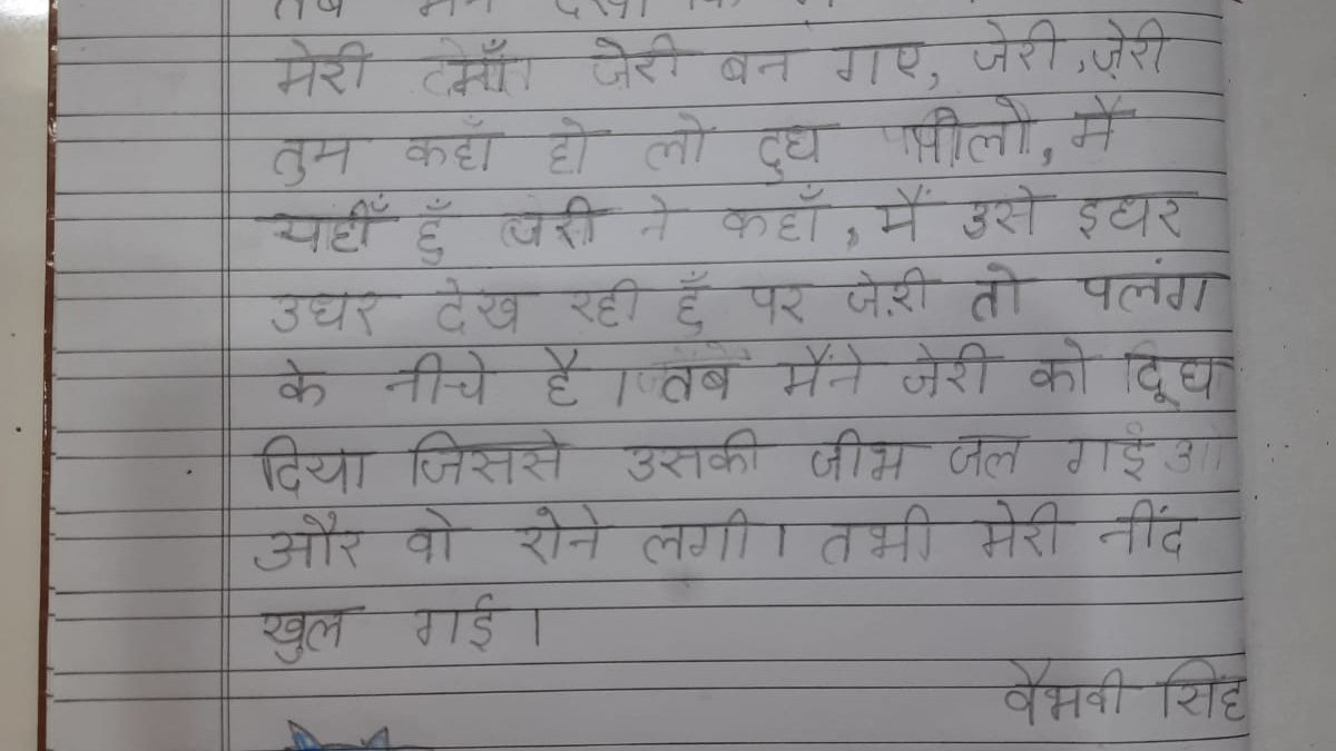 विद्यार्थियों में रचनात्मक लेखन की कला को निखारने का प्रयास हिंदी रचनात्मक लेखन प्रतियोगिता के माध्यम से ज़ूम पर दिनांक 18 अगस्त 2021 शाम 6:30 बजे किया गया जिसमें कक्षा 2, 3 और 4 के प्रत्येक वर्ग से दो- दो विद्यार्थी सम्मिलित हुए और दिए गए विषय पर सुंदर रचना की।