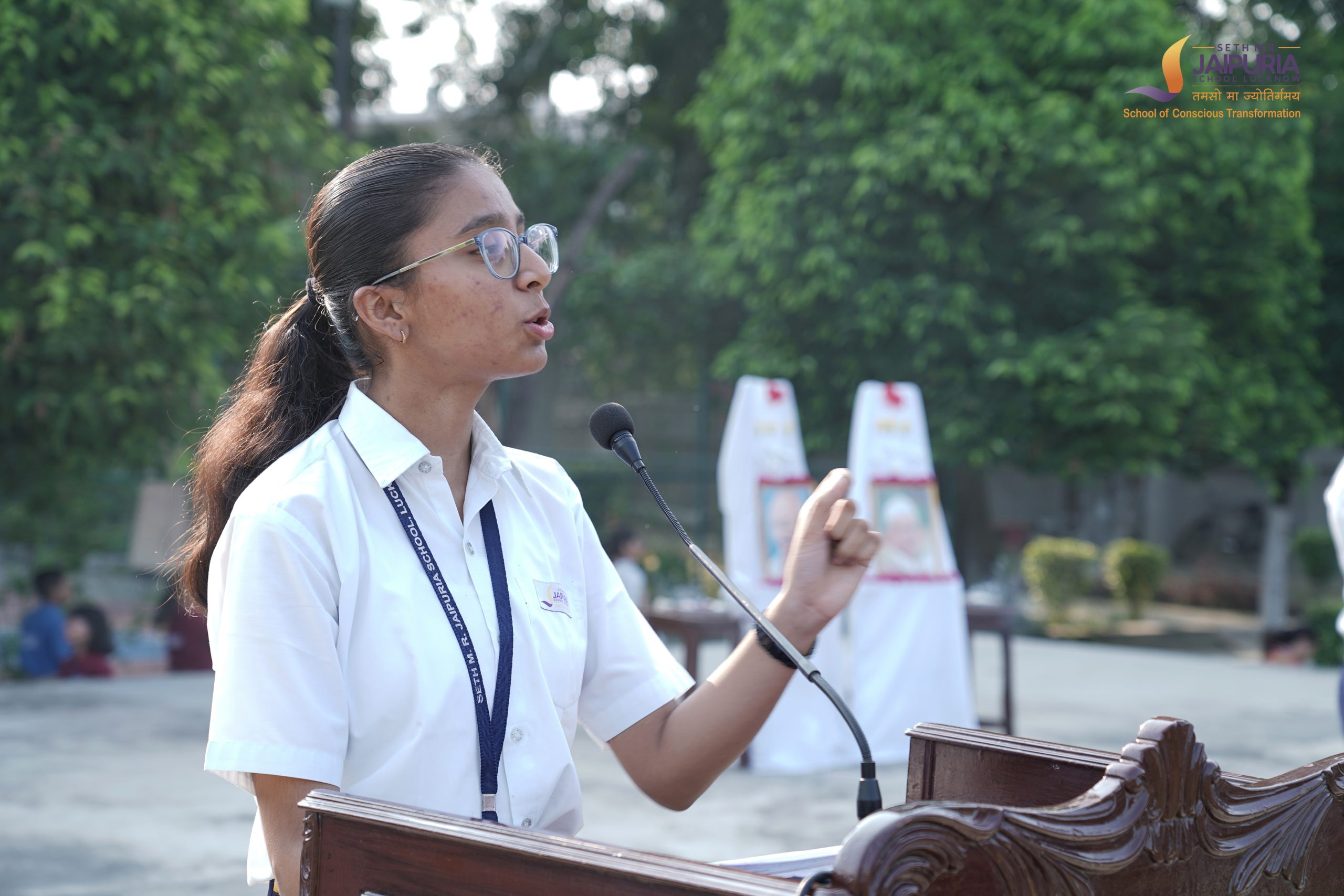 The school organized a special assembly to commemorate Gandhi Jayanti and Lal Bahadur Shastri Jayanti. The assembly was a vibrant and impactful event, filled with various activities that paid tribute to these great leaders. The program commenced with the recitation of Gita shlokas, followed by devotional songs that instilled a sense of patriotism among the students.