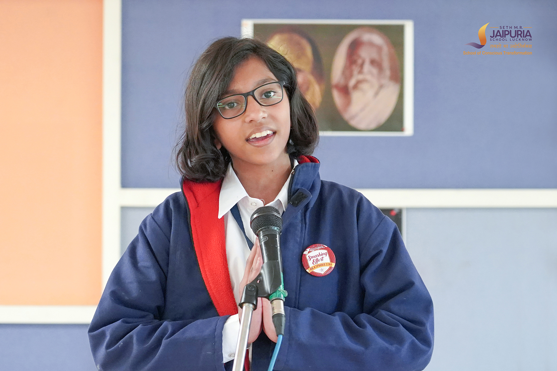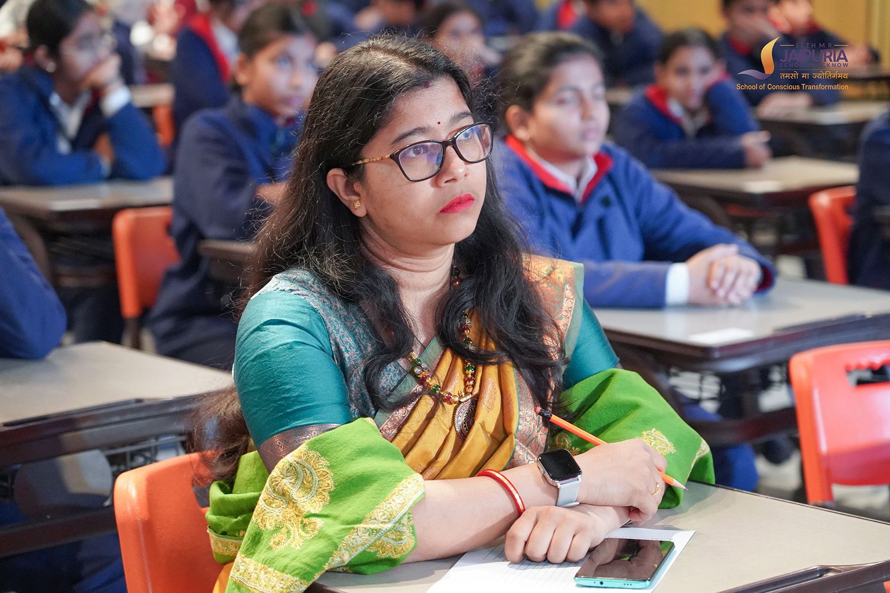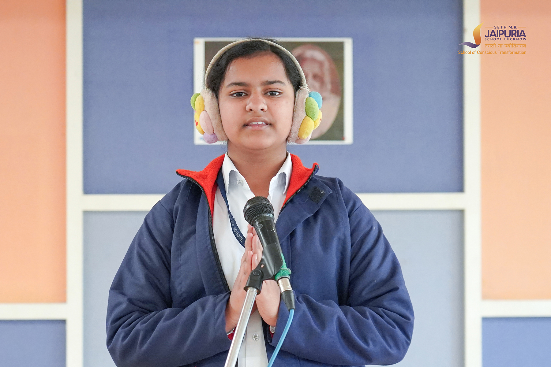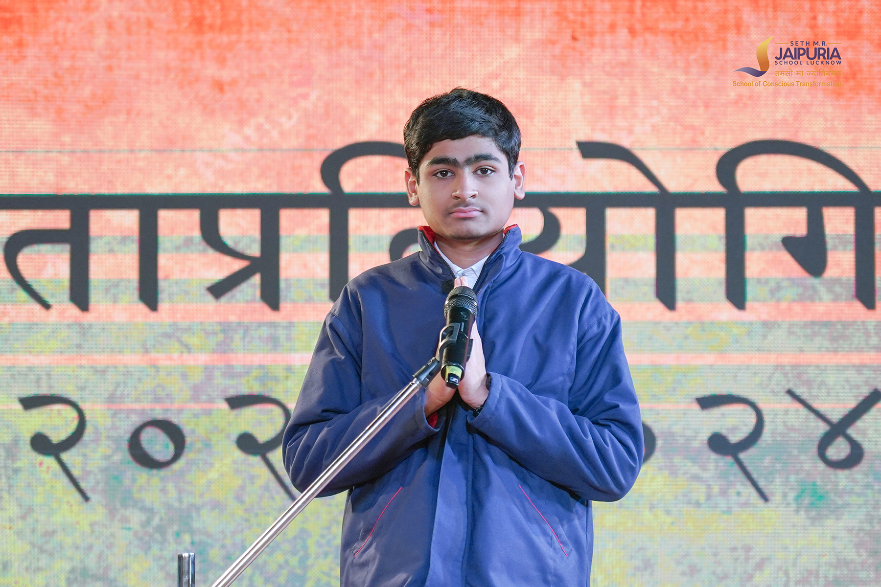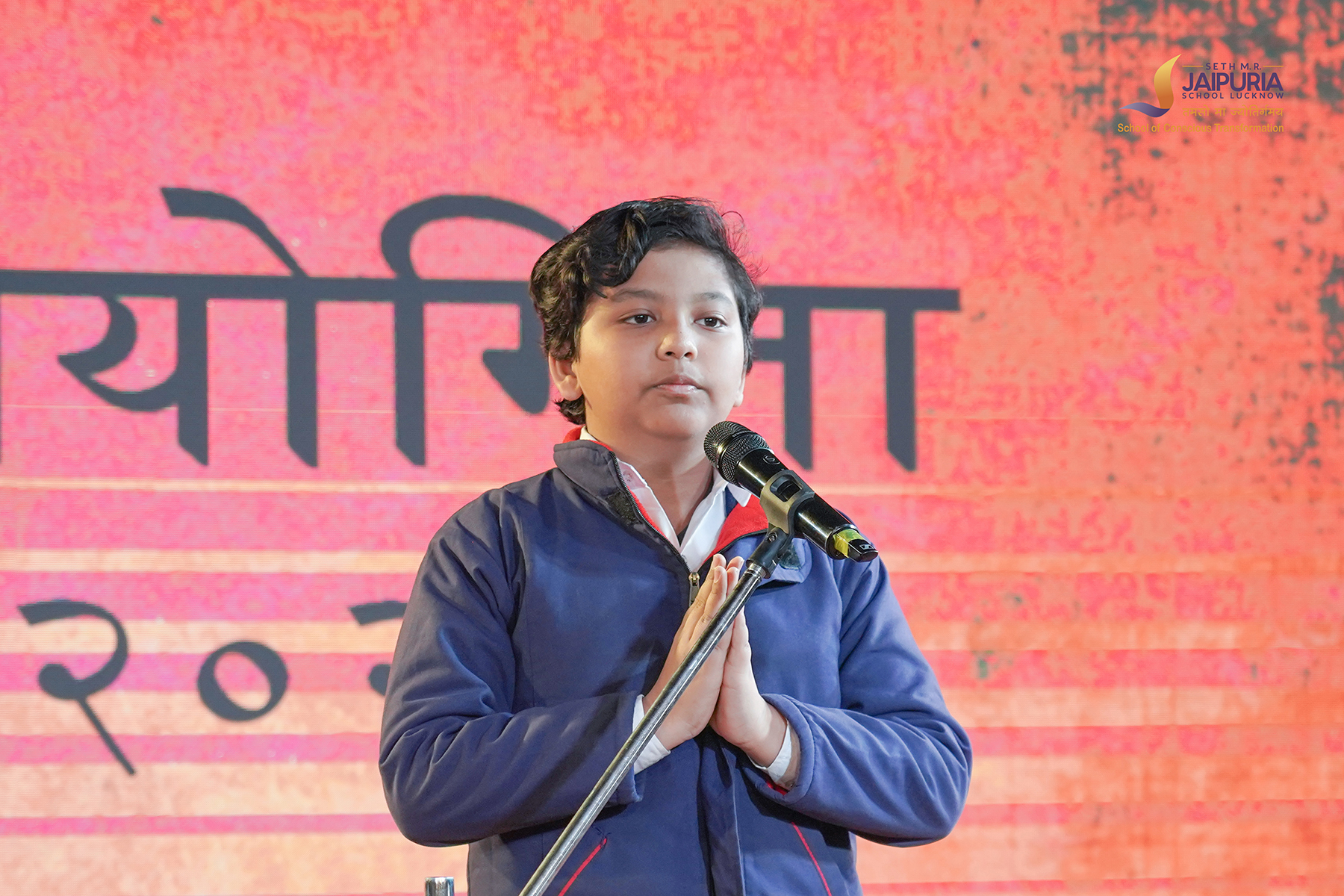 From 8th to 17th February, four Gita recital competitions, also known as Geeta Pratiyogita, were held at Seth M.R. Jaipuria School. Students from classes 5th to 8th participated with great enthusiasm. Recitations from the 3rd Adhyaya of the Bhagavad Gita filled the atmosphere of the school auditorium with divine bliss.