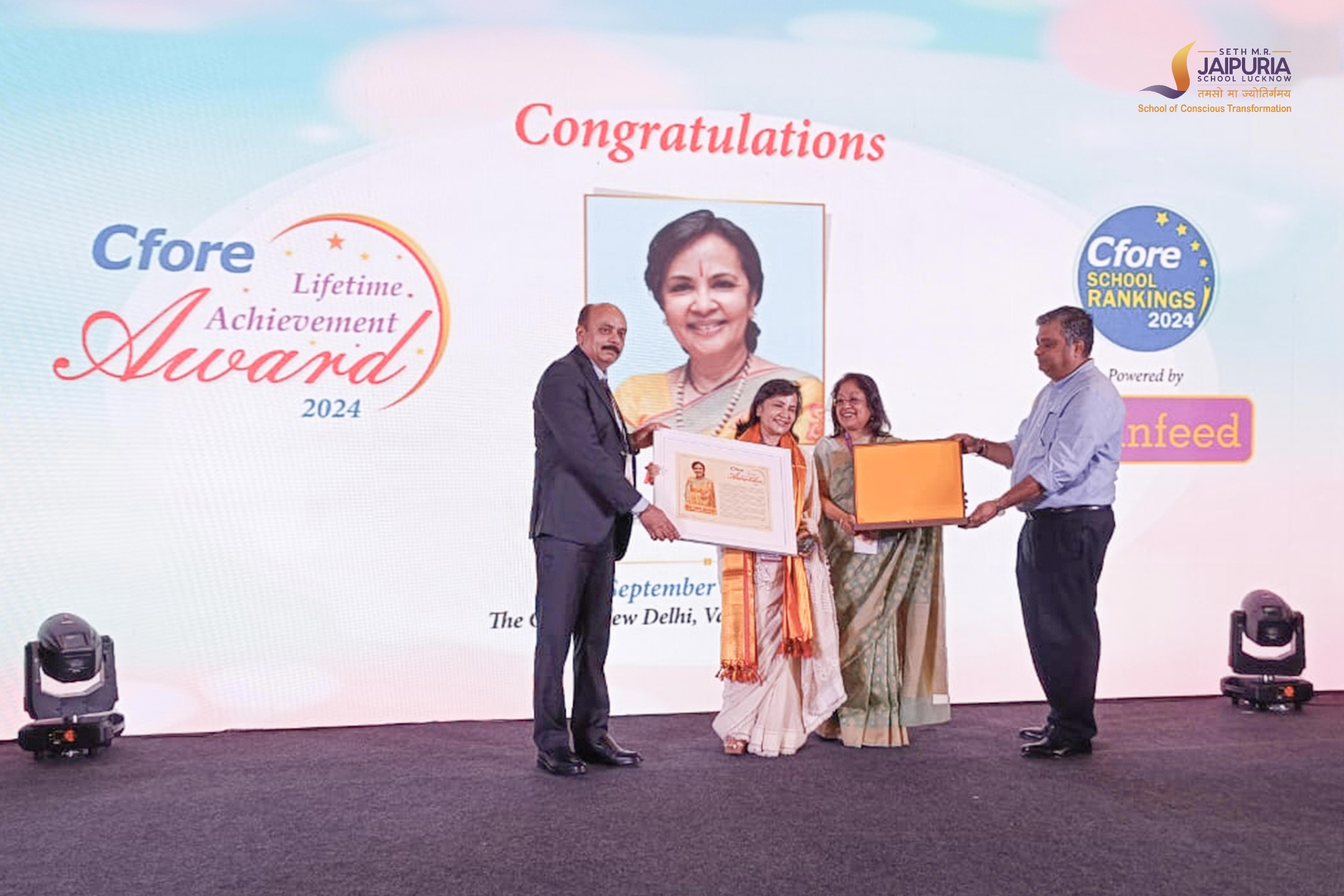 On this momentous occasion, our esteemed Vice Chairperson, Mrs. Anjali Jaipuria, was honoured with the prestigious Cfore Lifetime Achievement Award. This accolade recognizes her visionary contributions to the field of education and her unwavering commitment to elevating universal consciousness among the young minds of the nation. Through her pioneering efforts, she has championed an integrally rich pedagogy that nurtures not only the physical and intellectual growth of students but also their psychic and spiritual well-being, fostering a truly holistic development for future generations.