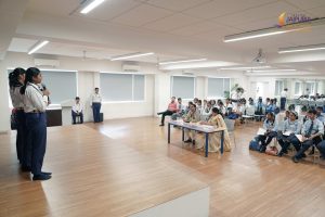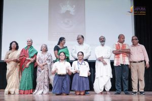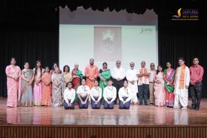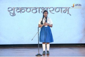 The event was divided into three segments: Sukantabharanam, Nityabhivyakti, and Swamatam. In Sukantabharanam, four students at a time showcased their eloquent recitation skills by reciting a verse from Bhavani Bharti and then explaining its meaning. In Nityabhivyakti, students donned vibrant costumes and gave captivating performances, bringing the verses of Bhavani Bharti to life. In Swamatam, they shared unique, modern interpretations of Bhavani Bharti, offering fresh perspectives relevant to today’s world.