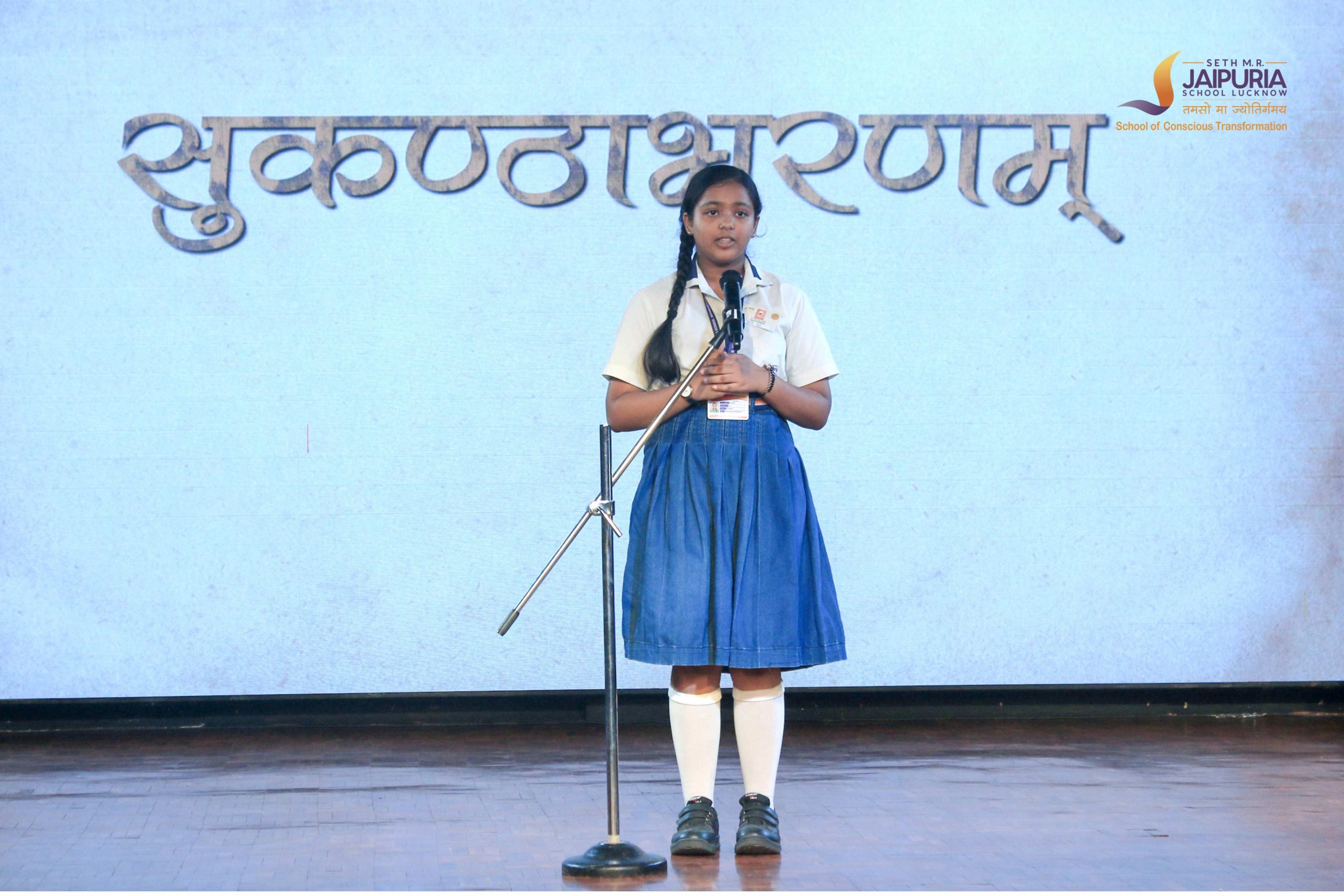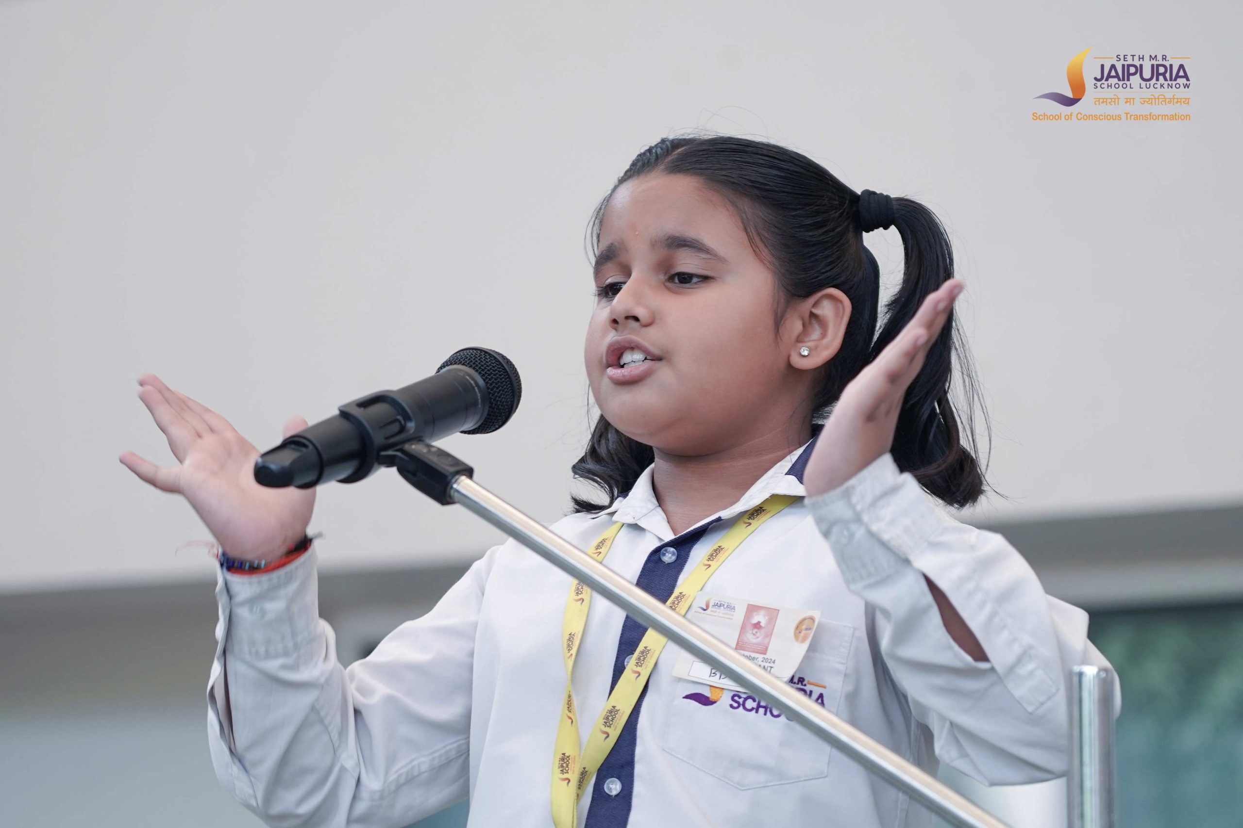 On 15th October 2024, the Bhavani Bharti competition was held at Seth M.R. Jaipuria School. The event saw participation from 23 schools across the city and Uttar Pradesh. Bhavani Bharti, penned by Sri Aurobindo between 1904 and 1908, is a collection of 99 verses that resonate with the voice of Bharat Mata, each infused with a profound sense of patriotism.