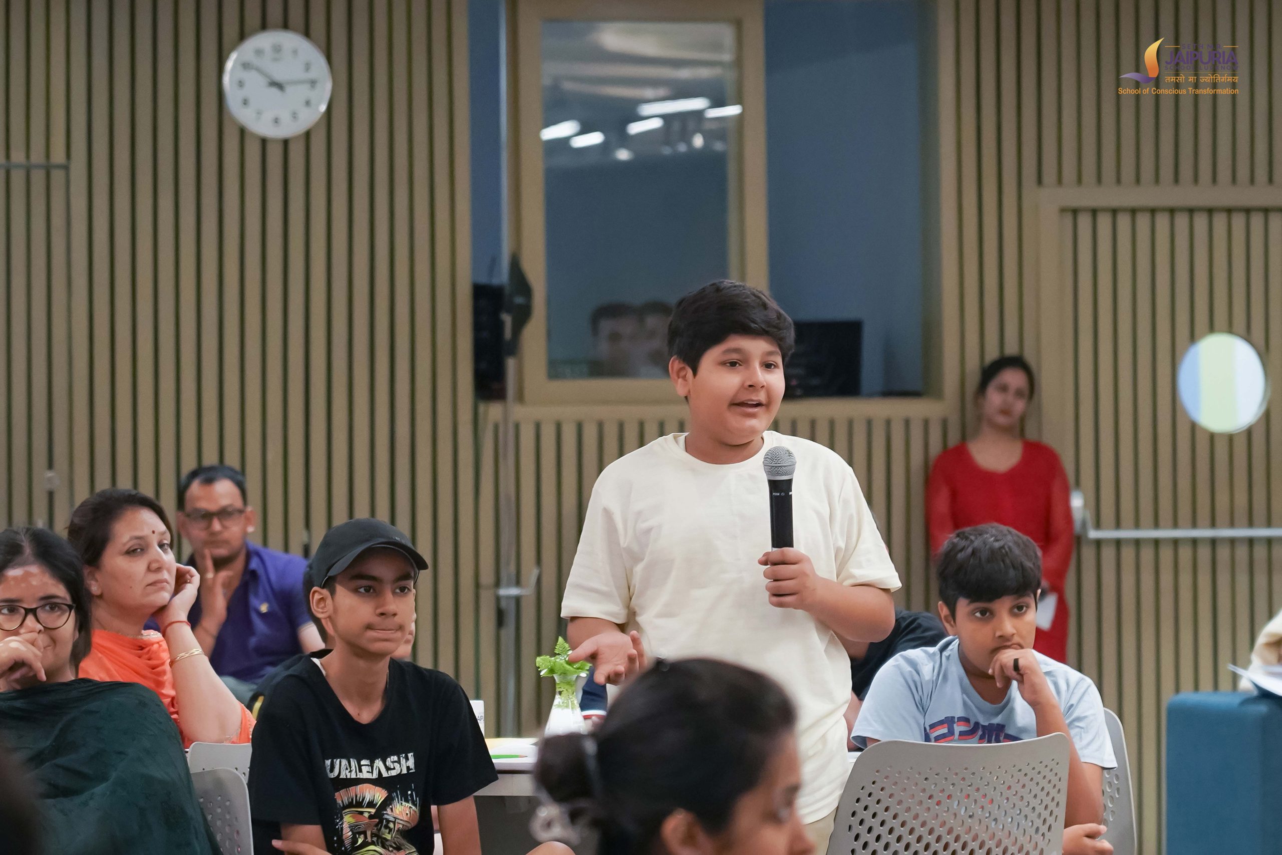 Even after the session concluded, students continued to gather around Sushrut, eagerly seeking answers to clarify their lingering doubts. Impressed by the thoughtful questions and curiosity of one student, Vishnu of Grade 7, Sushrut gifted him a copy of his book, Bhagavad Gita: The Rhythm of Krishna, as a token of appreciation.
