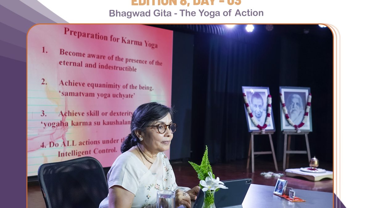 She beautifully summarised these steps: “Be constantly aware of the Divine’s presence, maintain equanimity, act skilfully, and discriminate wisely. When these are in place, your actions become a worshipful offering—a true Karma Yoga.”