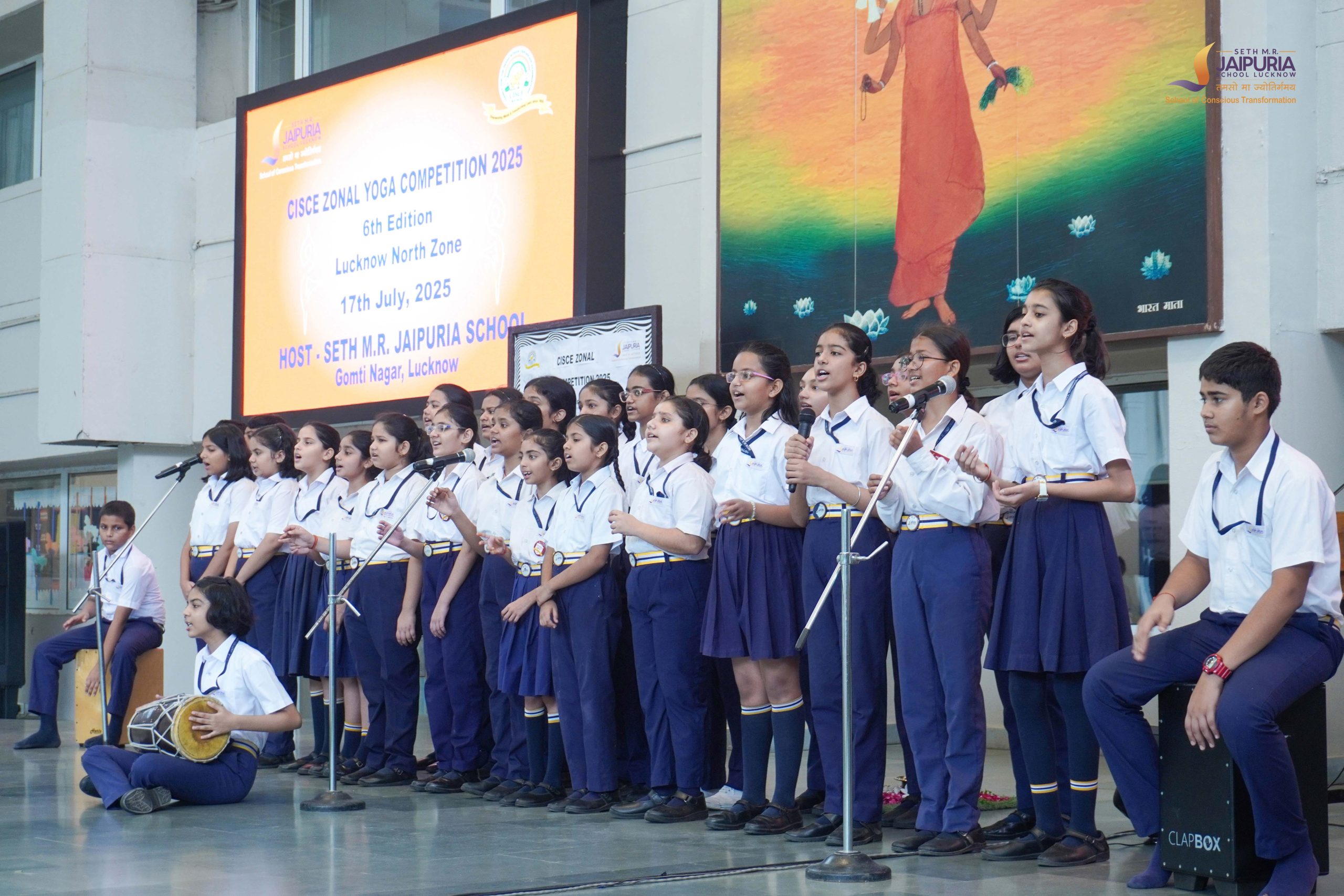 Seth M.R. Jaipuria School, Vineet Khand, Gomti Nagar, Lucknow, had the proud privilege of hosting the CISCE Yoga Competition 2025 (Lucknow North Zone) on 17th July 2025. The campus transformed into a vibrant yet contemplative space where discipline, devotion, and inner calm converged, as students from reputed schools across the region came together to honour the timeless science of yoga.