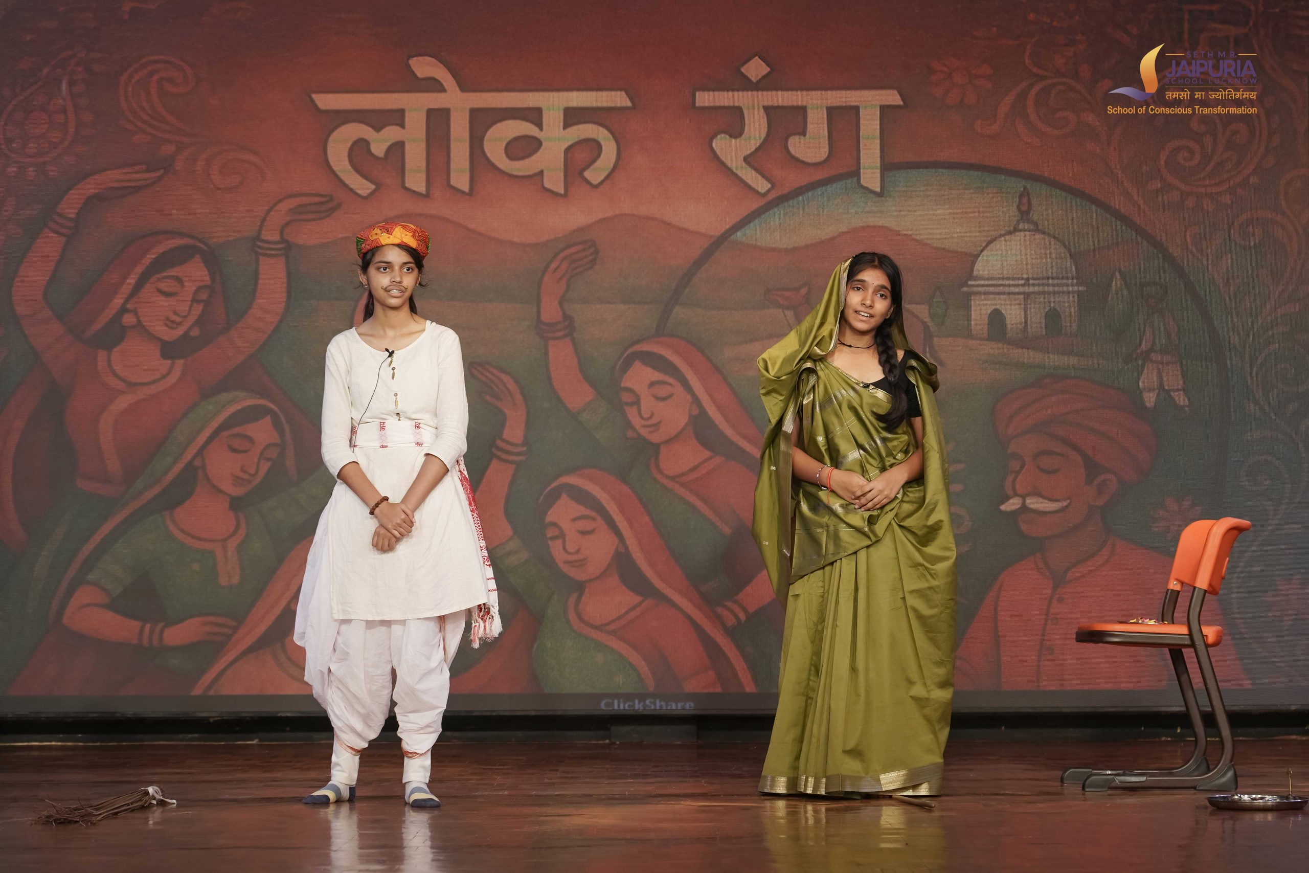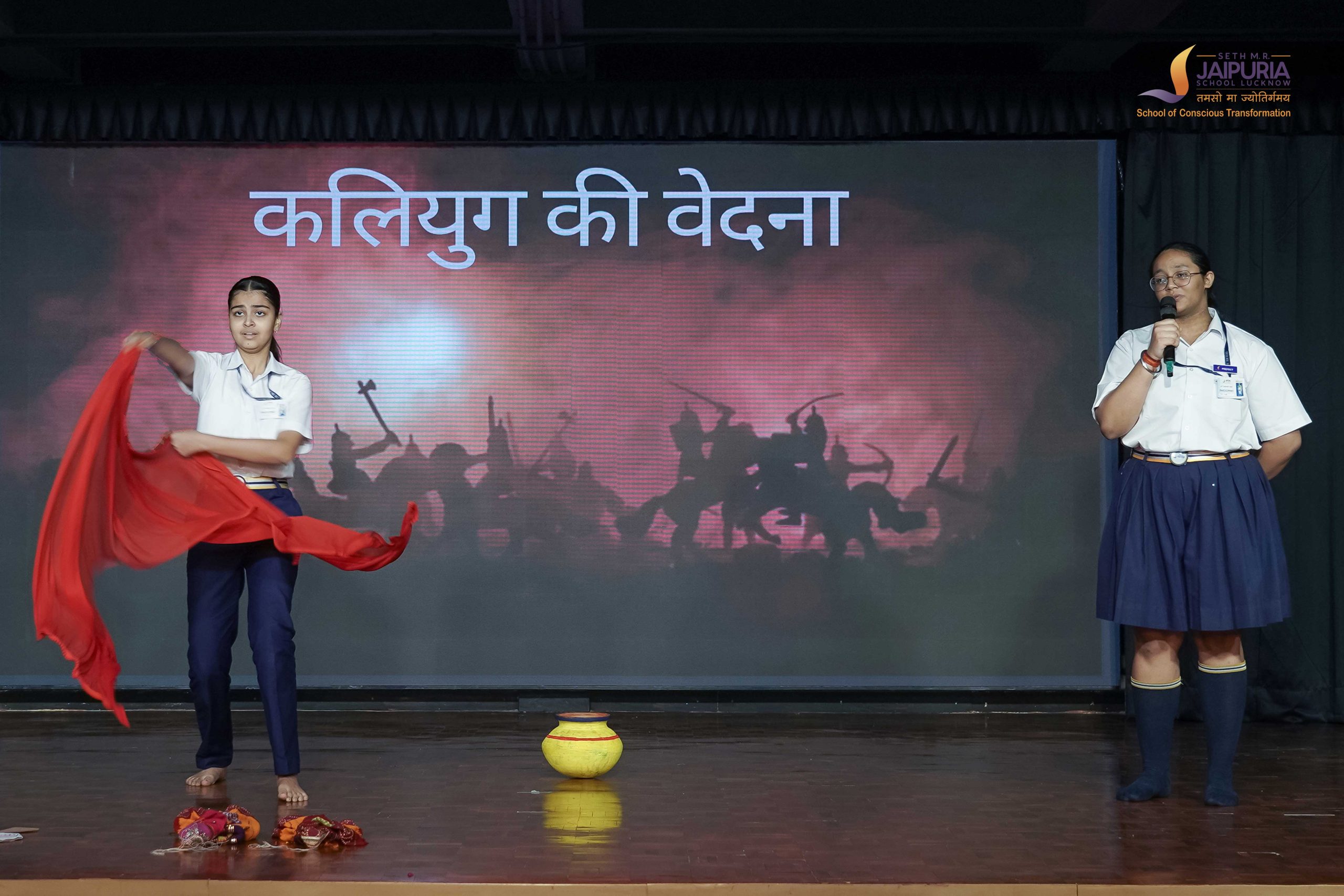 The cultural spirit of the fest was beautifully highlighted in the event “लोक रंग.” One of the performances, the poem “Amusa ka Mela” by Kailash Gautam, enchanted the audience with its vivid portrayal of the New Moon night during the Kumbh Mela. This poem was performed by Suryansh Singh and Shivam Kumar from class 12, whose enactment was highly appreciated by the audience.