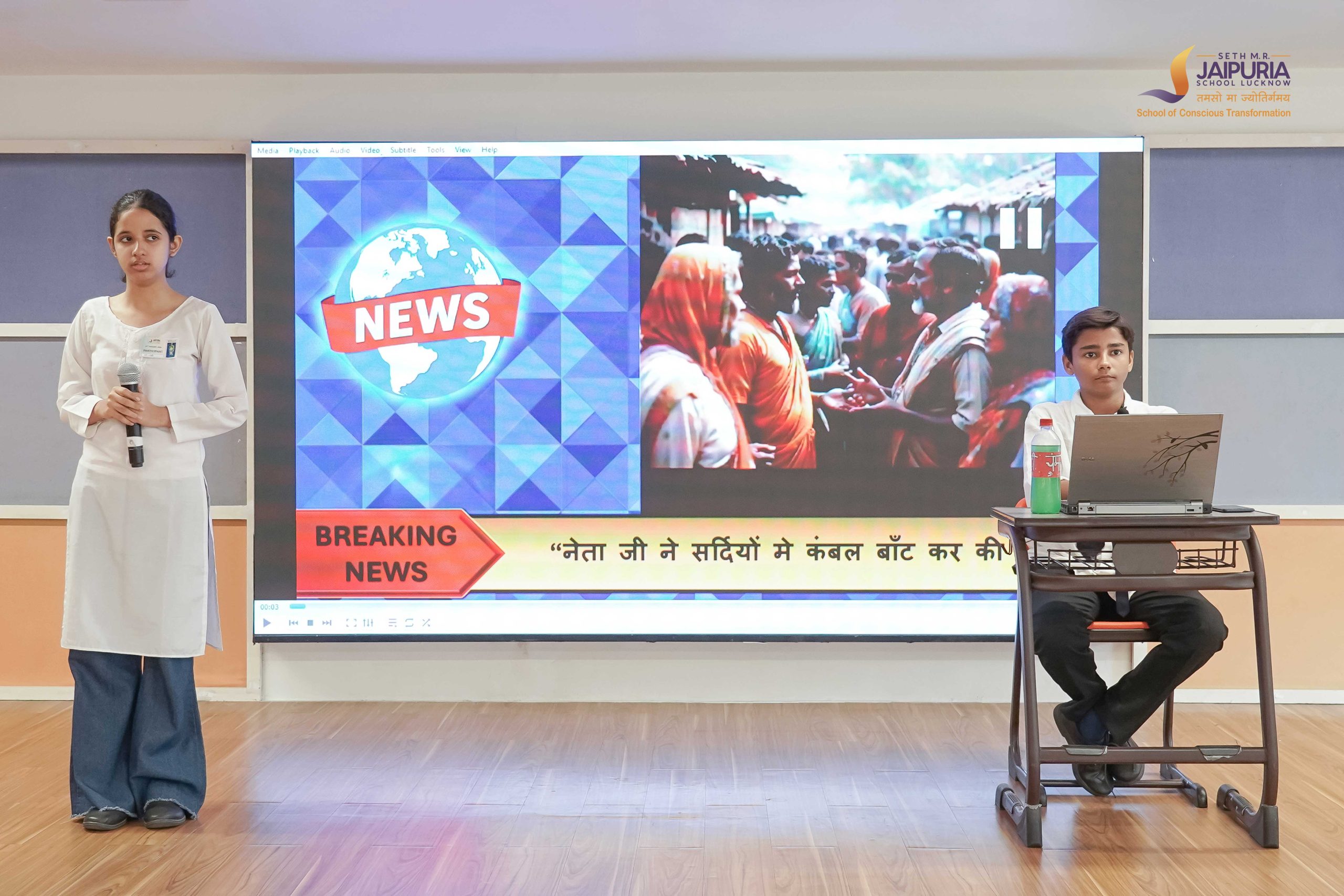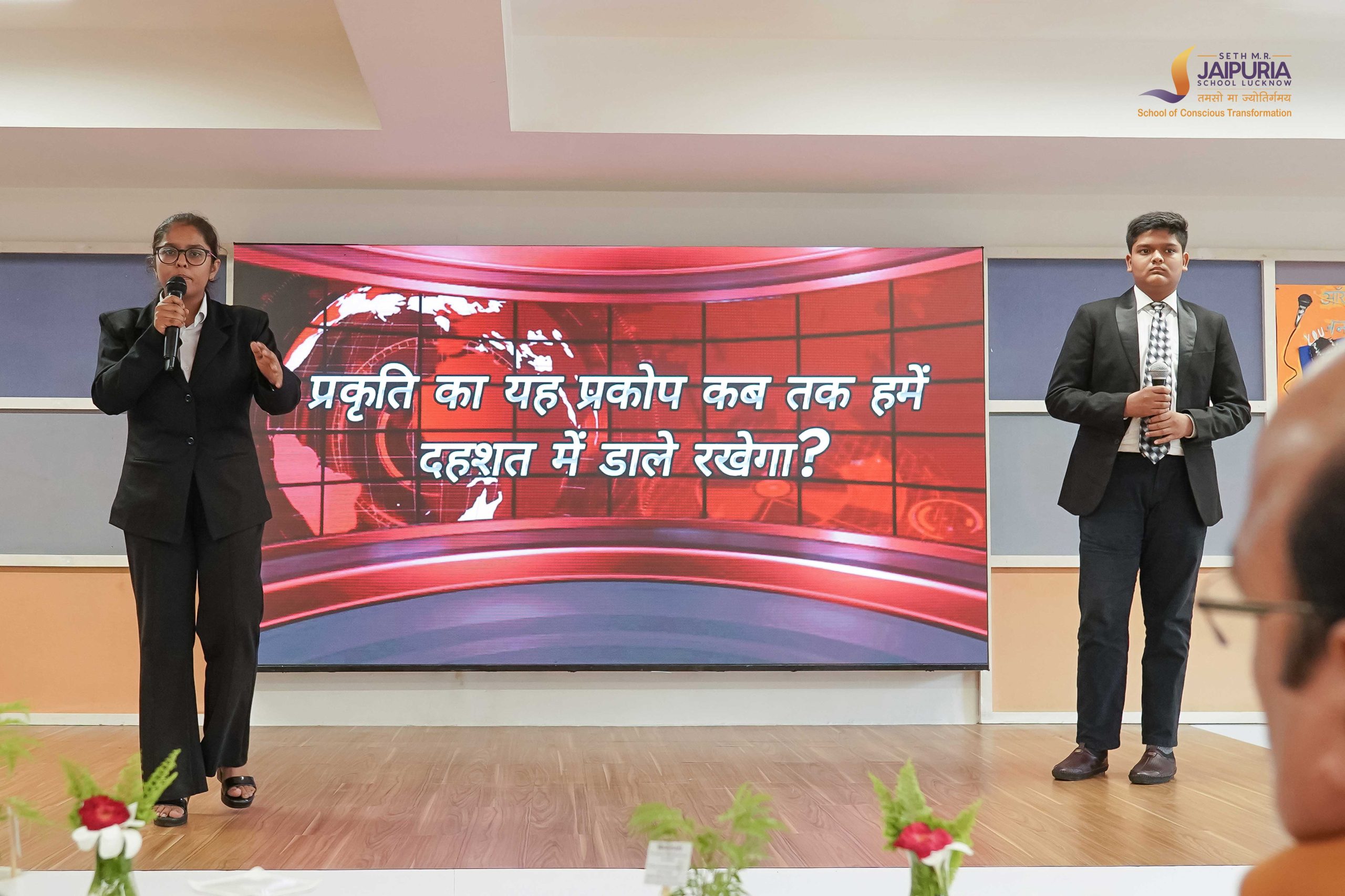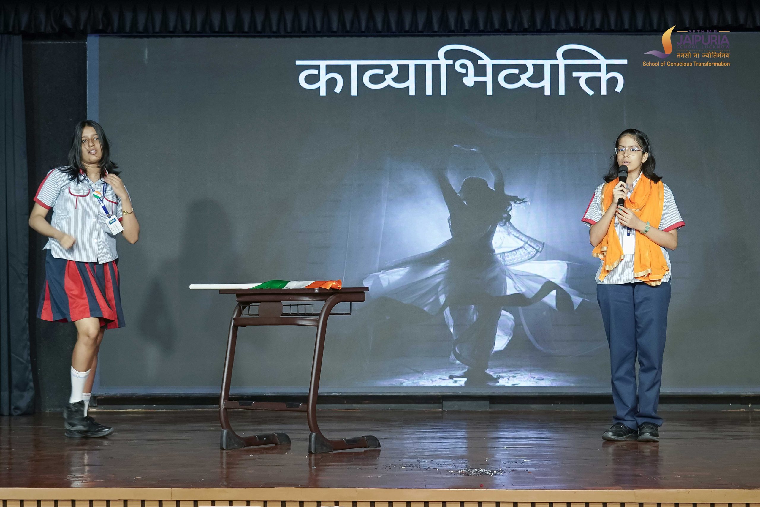 Simultaneously, the “आँखों देखी” event attracted budding journalists who demonstrated their flair for news reporting. The poetic soul of the fest shone brightly in the “काव्याभिव्यक्ति” event, where pairs performed poetry with heartfelt expression and artistic acting.