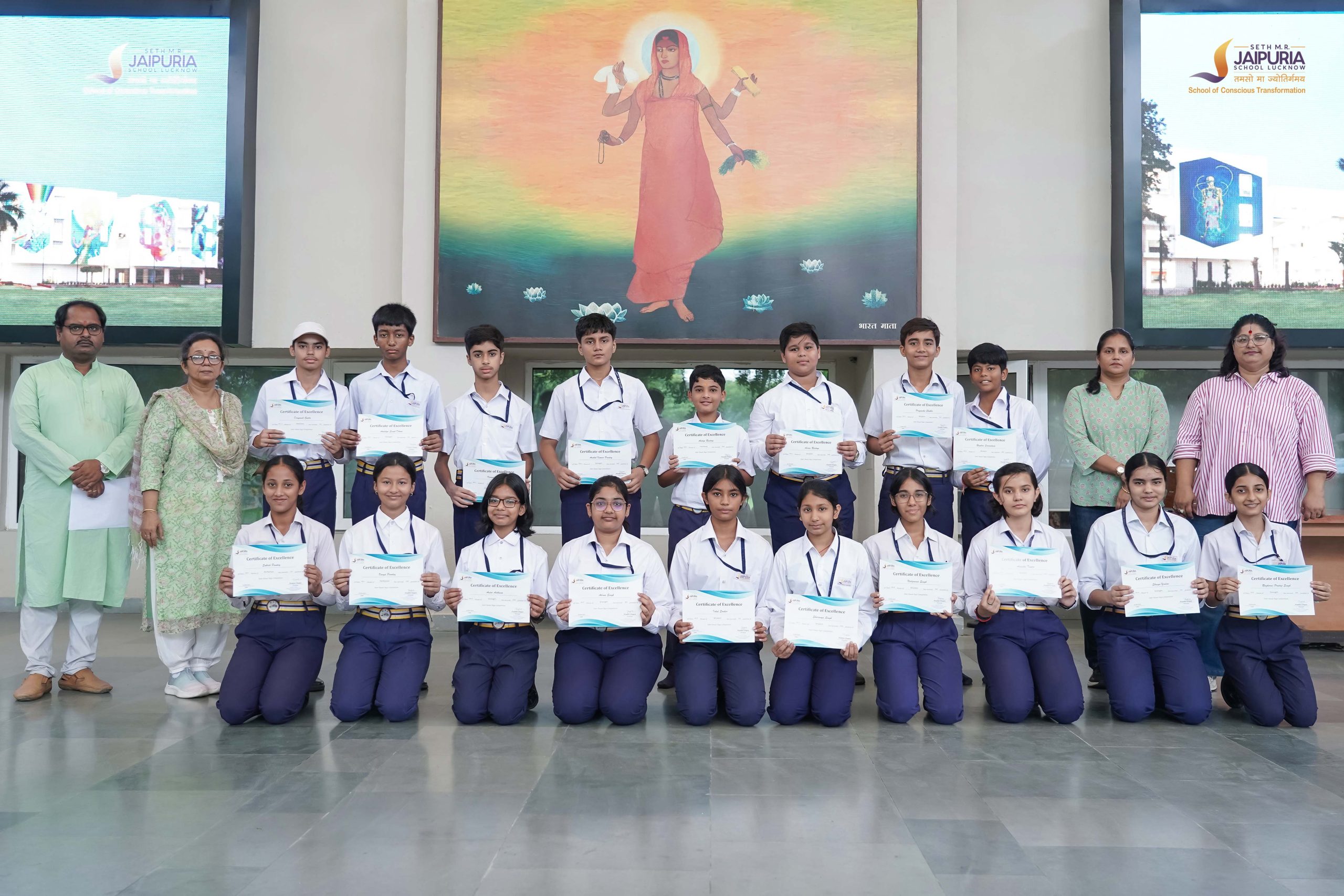 The event concluded during the morning assembly on Wednesday, 8th October, when Ms Deepa Wahi and Ms Joyita Mishra felicitated the deserving winners. Their beaming smiles reflected not only achievement but also the quiet joy that comes from mindful effort and self-discipline.