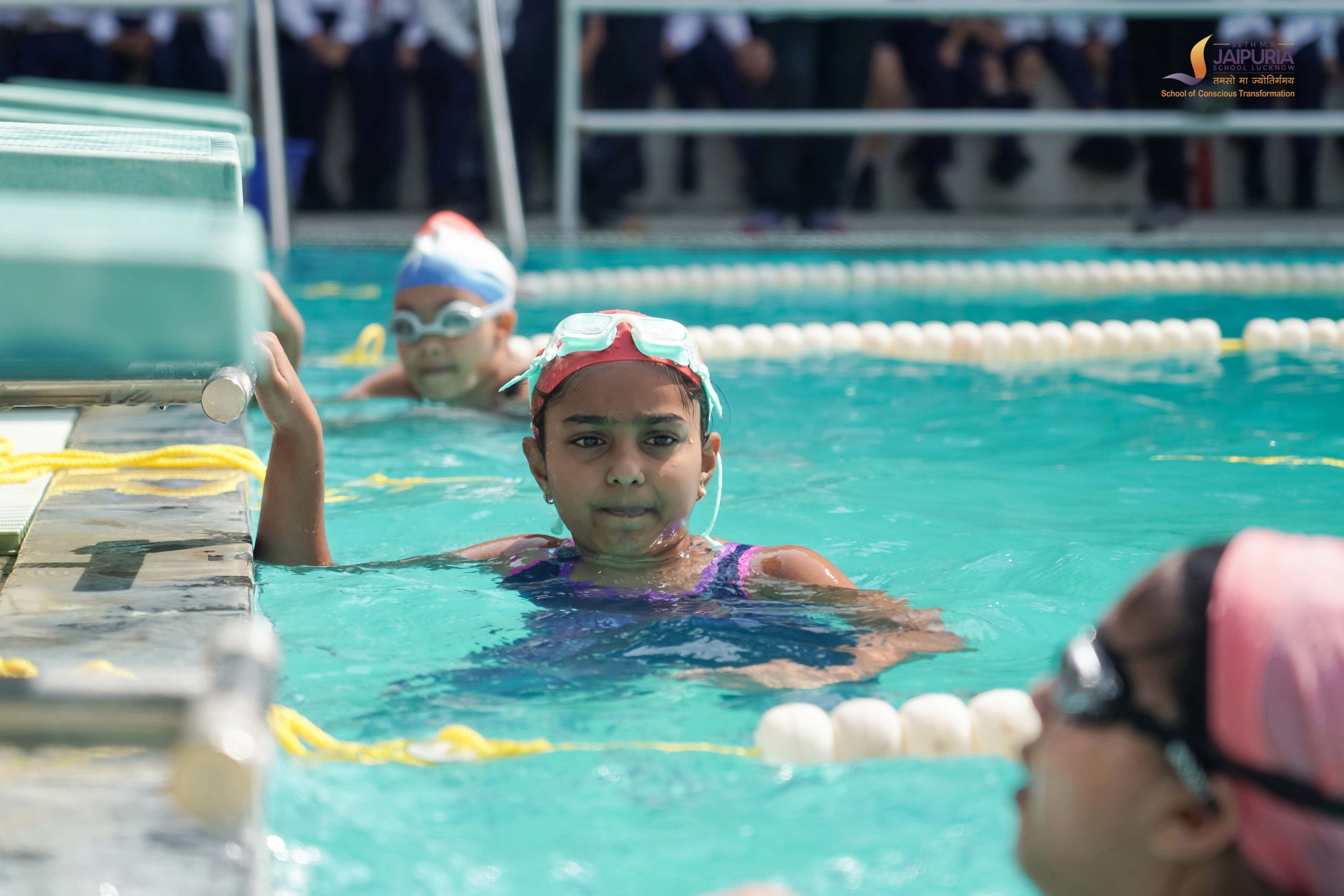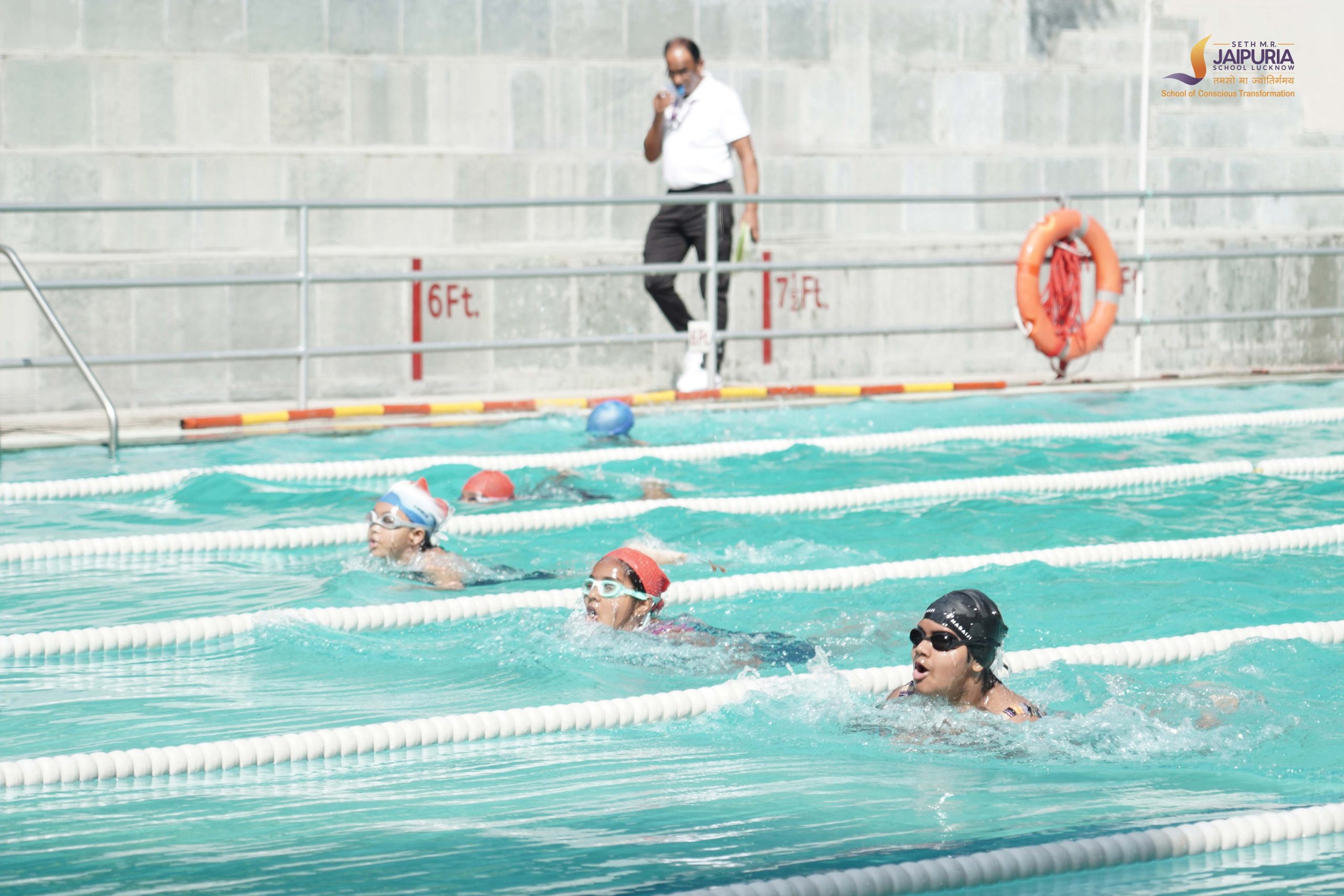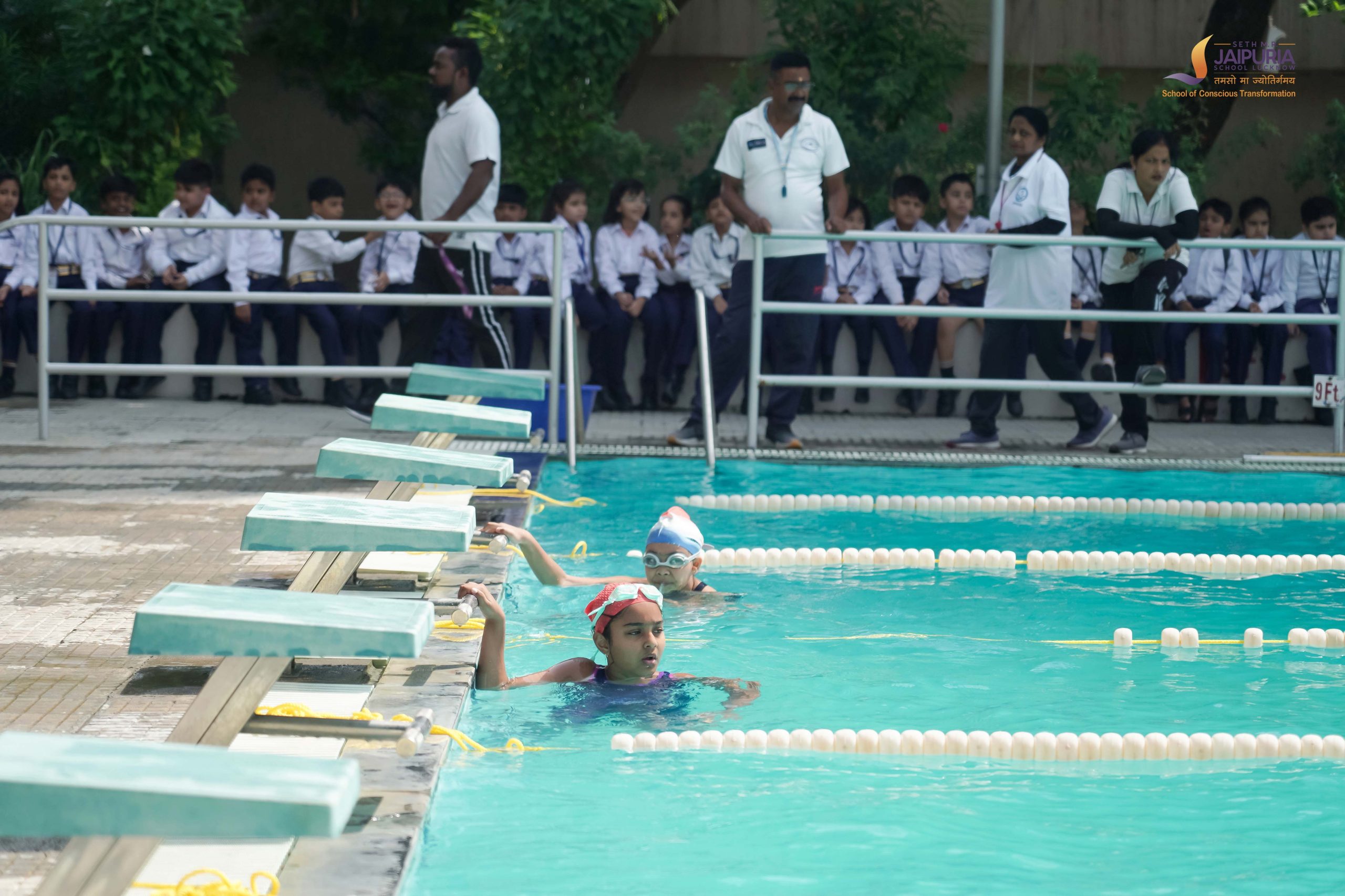 At Seth M.R. Jaipuria School, physical fitness is cherished as an essential aspect of holistic development. Swimming, in particular, is promoted as a vital life skill, encouraging stamina, discipline, and self-belief from an early age. The competition offered an ideal platform for students to cultivate teamwork, courage, and resilience, embodying the school’s philosophy of conscious growth.