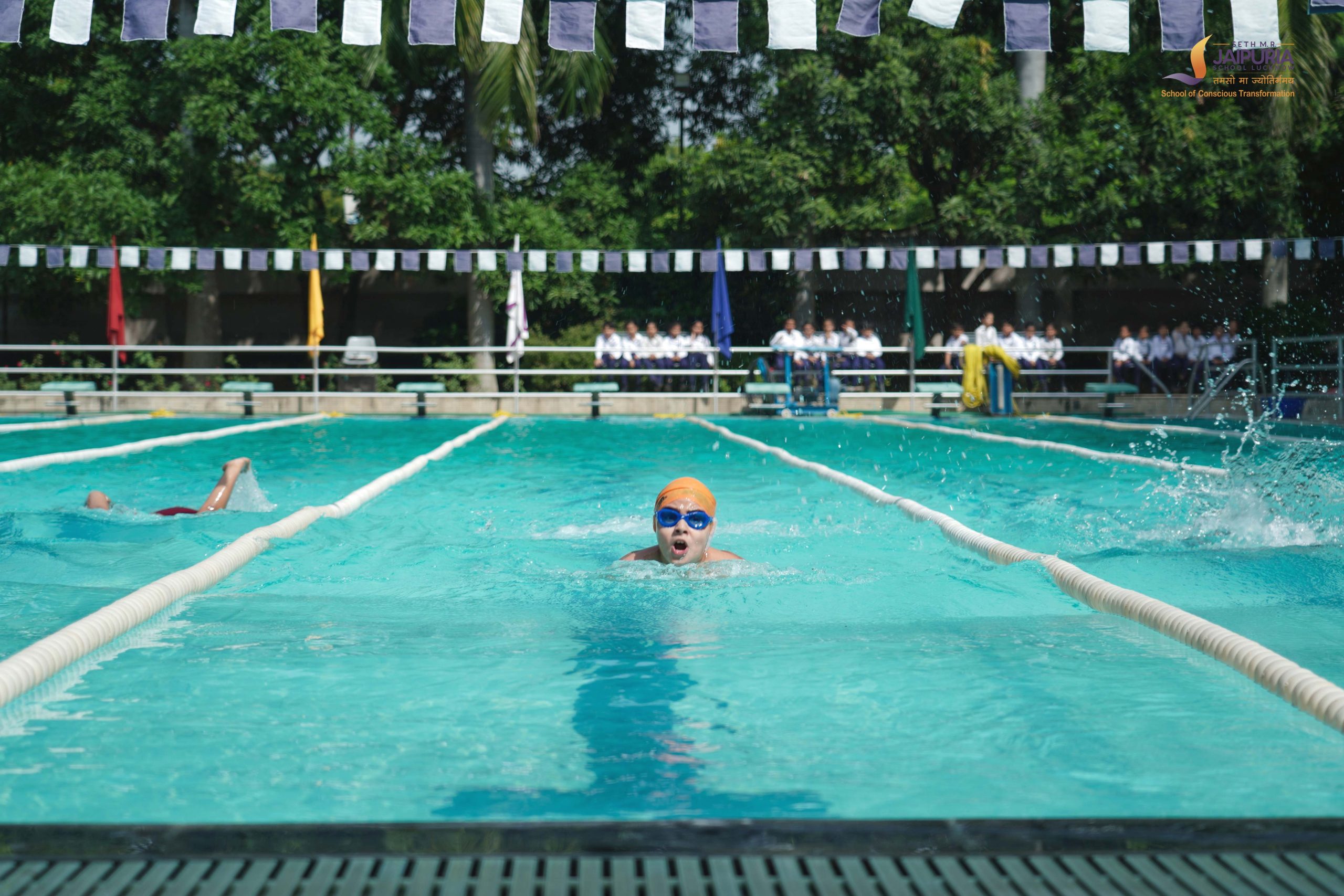 Seth M.R. Jaipuria School, Gomti Nagar, proudly hosted the Inter-House Swimming Competition for students of Classes I to IV on Saturday, 9th October 2025, at the school’s swimming pool. The event was a splendid celebration of enthusiasm, skill, and sportsmanship, as young Jaipurians took to the waters with confidence, grace, and infectious cheer.