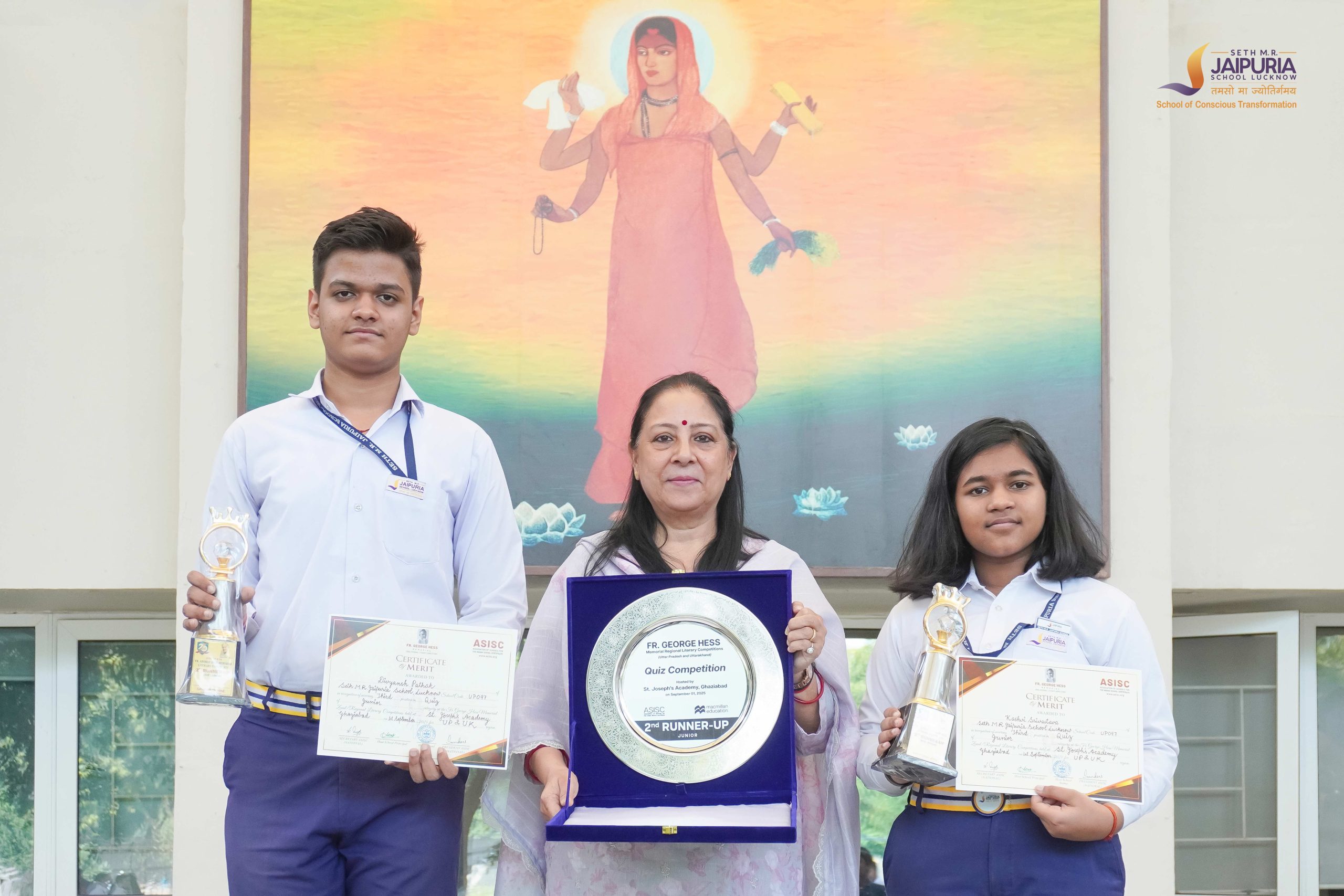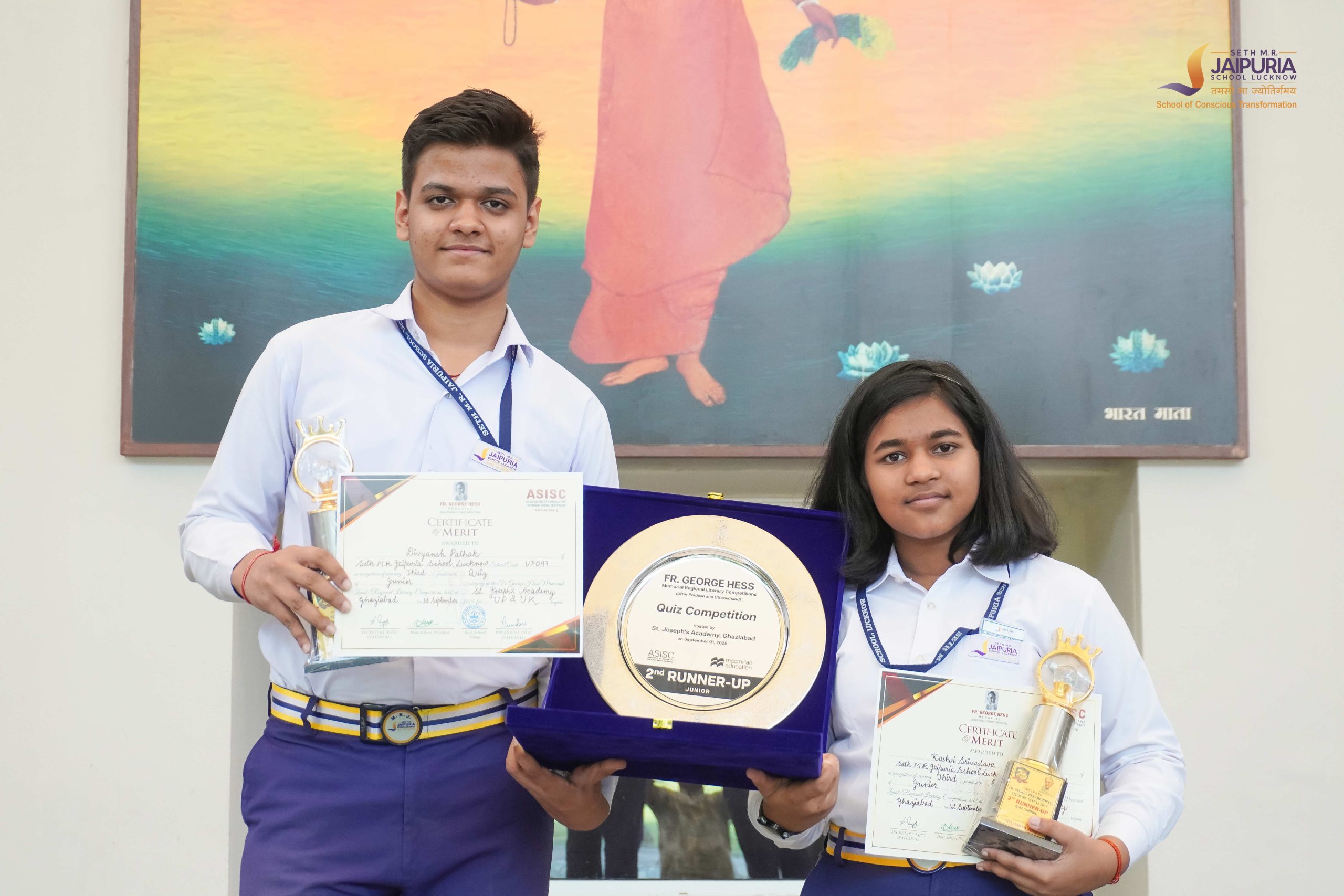 After emerging successful in the zonal round in August 2025, they advanced to the regional final held at St. Joseph’s College, Ghaziabad on 1 September 2025. Tackling rounds on general knowledge, science, history, current affairs, and reasoning, the duo impressed with their quick thinking and composure, securing the Third Position (Second Runner-Up) among all finalists.
