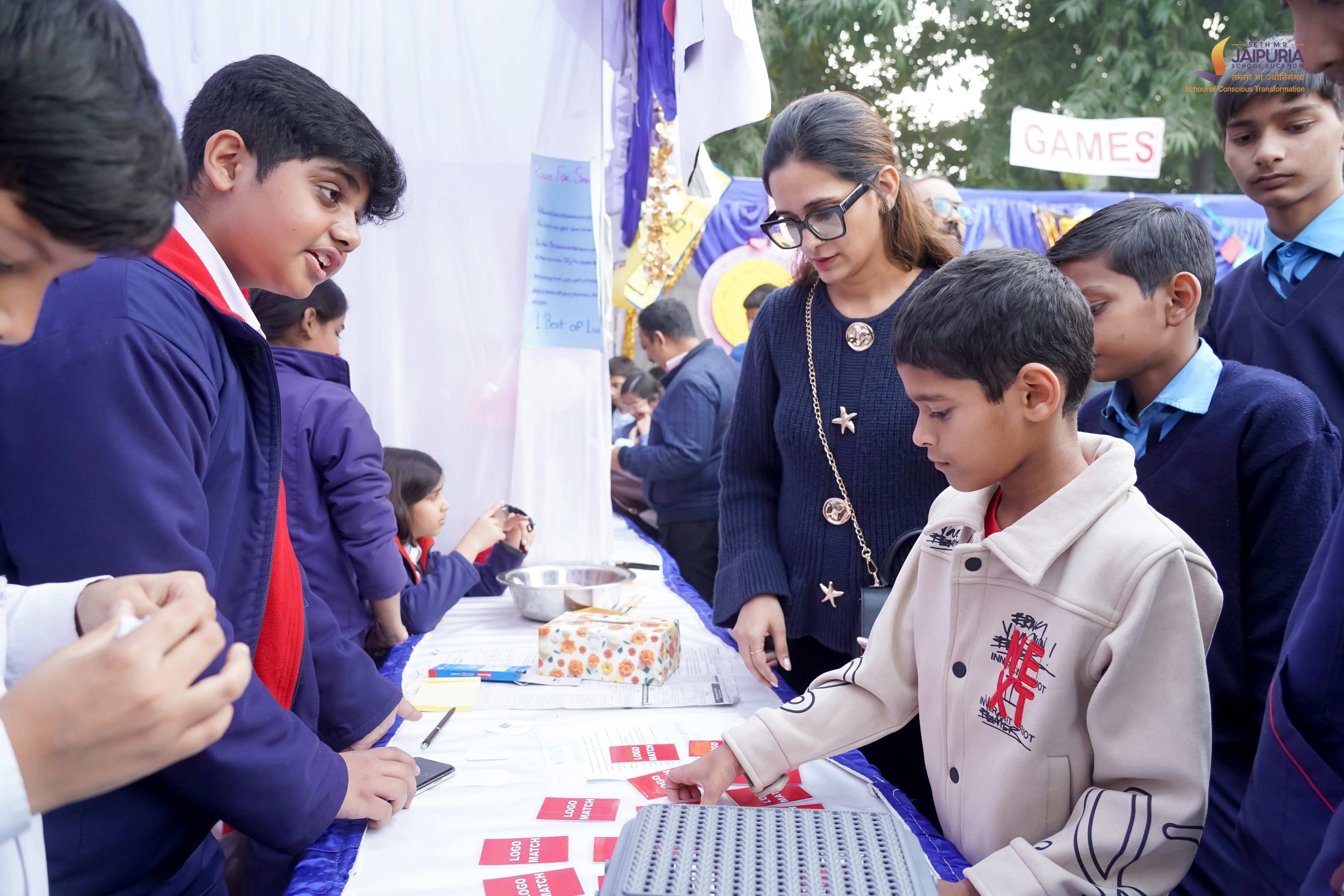 The fete grounds were dotted with a wide range of thoughtfully designed game stalls, each drawing its own enthusiastic crowd. Students and parents moved eagerly from one stall to another, testing their skills memory coordination and teamwork. Games like Mathbola Spot the Brand and Jenga Mania kept minds sharp and nerves steady, while Food Charades and Songs Dumb Charades sparked loud laughter as participants acted their hearts out.