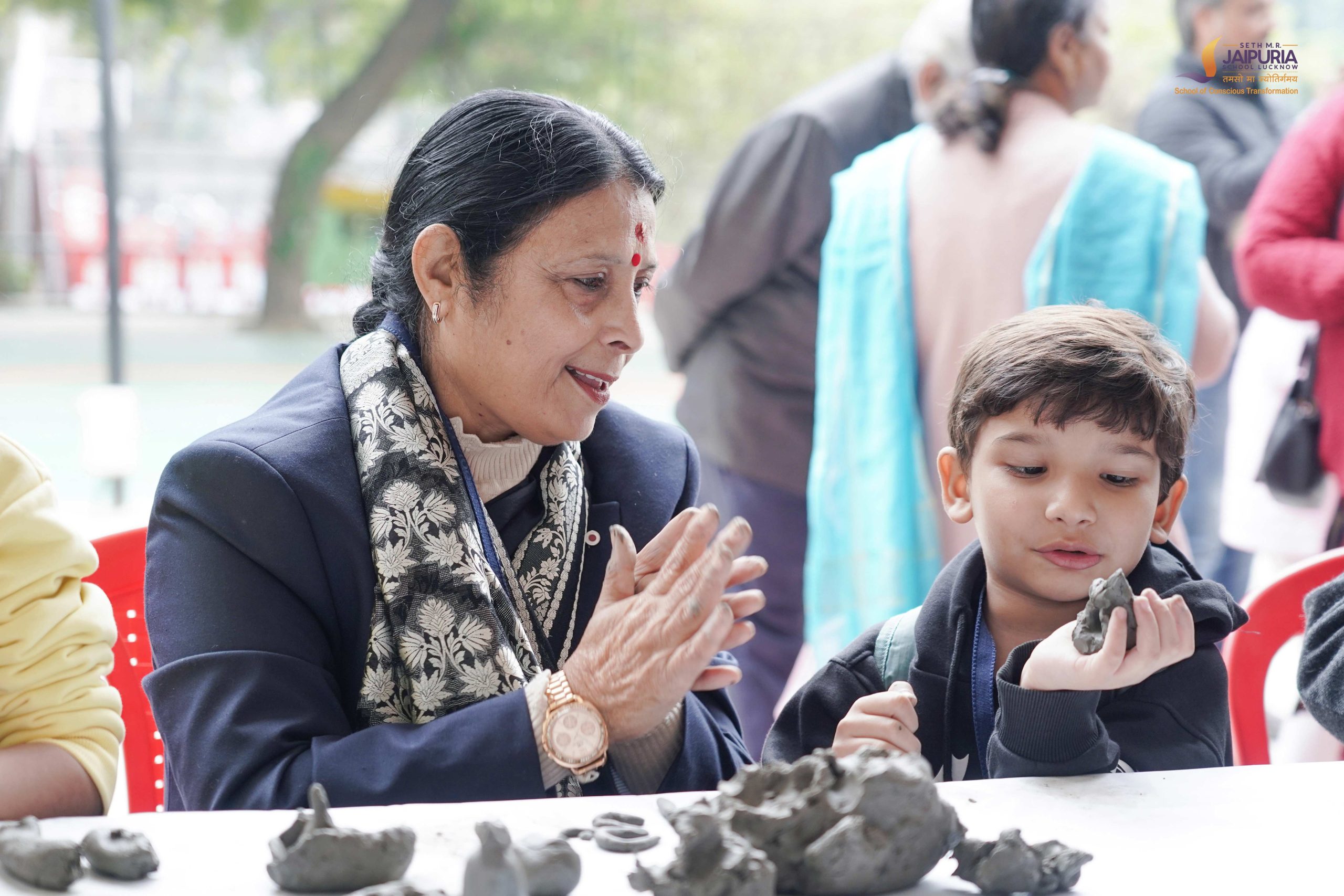 Equally engaging was the clay modelling zone, where creativity flowed freely. Together, grandparents and children shaped adorable clay creations, from tiny elephants and pots to little Ganesh ji idols and Shivlings. What stood out was not the final outcome, but the joy of creating together, without hurry or expectation.