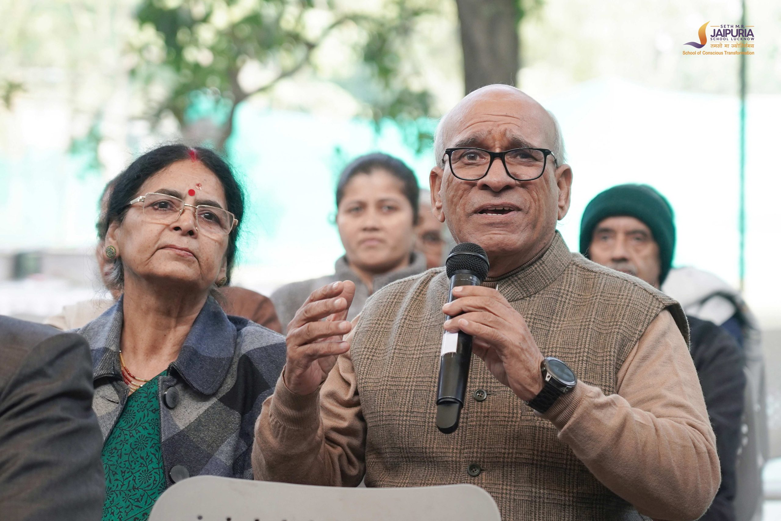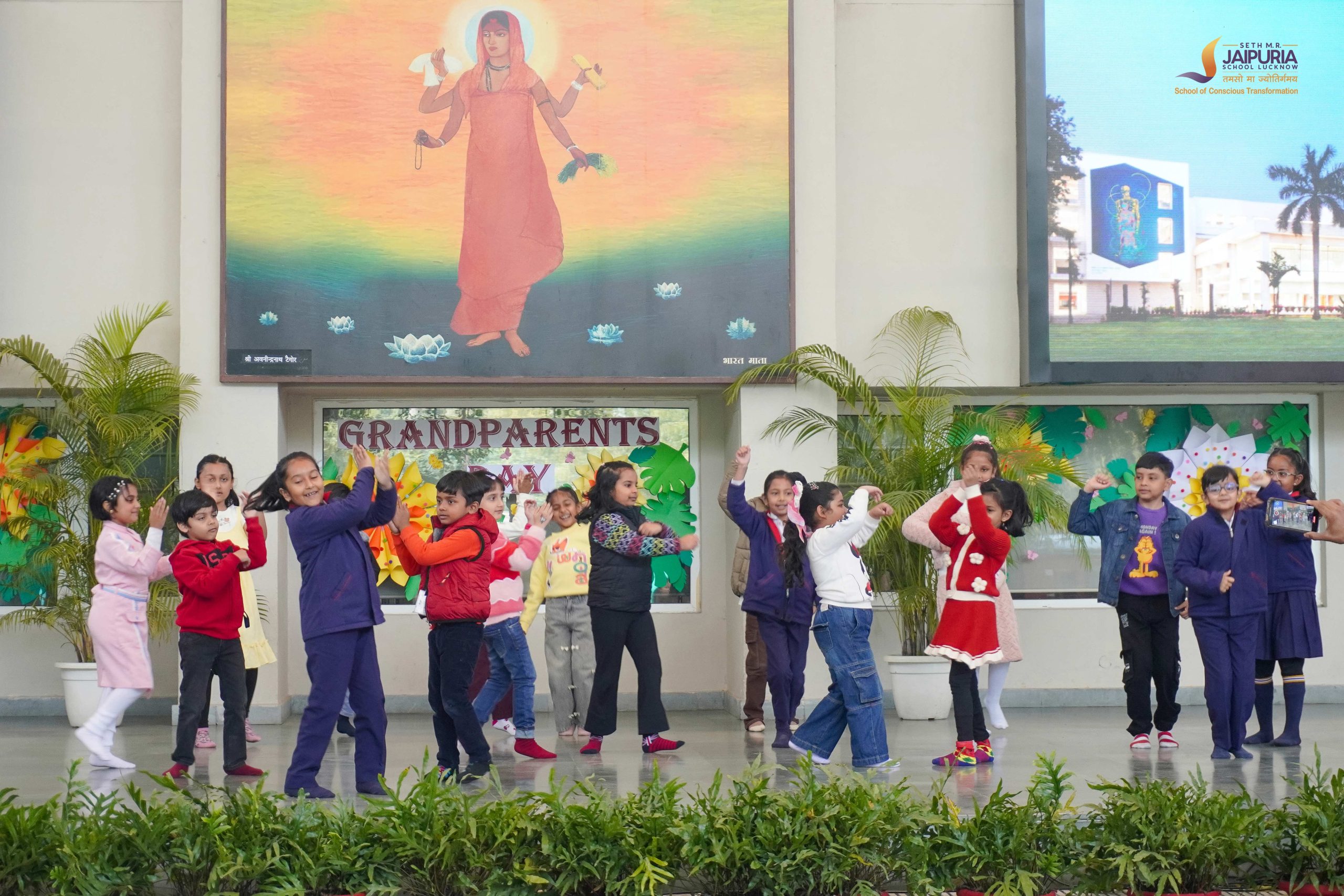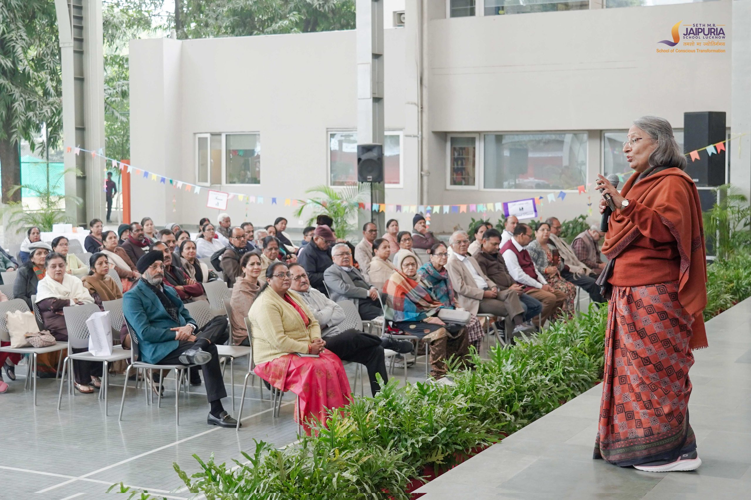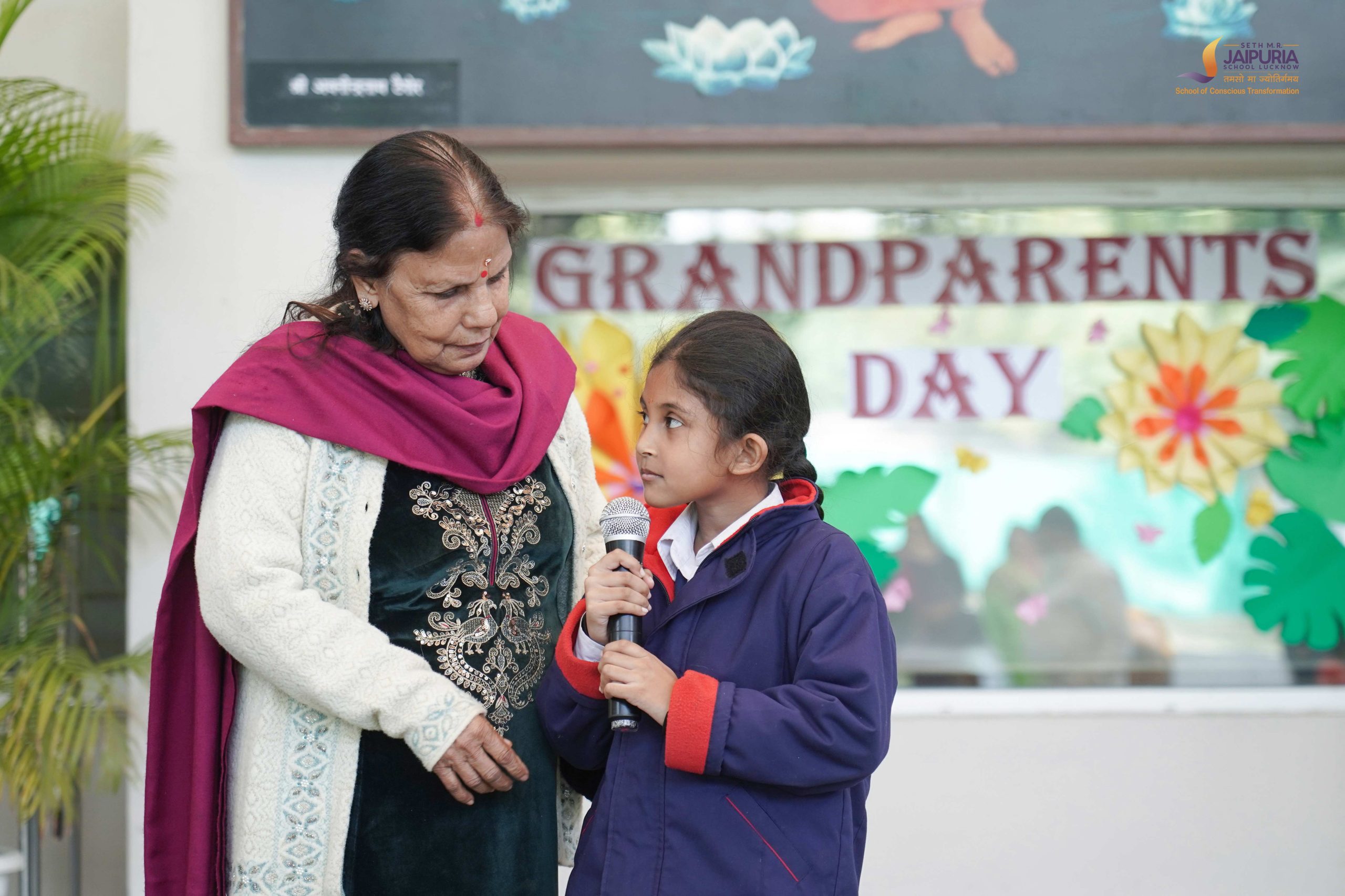 A key highlight of the day was Jaipuria Samvad, an open and meaningful dialogue between teachers and grandparents. The session reflected the school’s philosophy of conscious transformation, extending learning beyond classrooms into homes. Grandparents shared how children speak fondly about their teachers, silence time, water breaks, appreciation through stars, and the loving environment at school.
