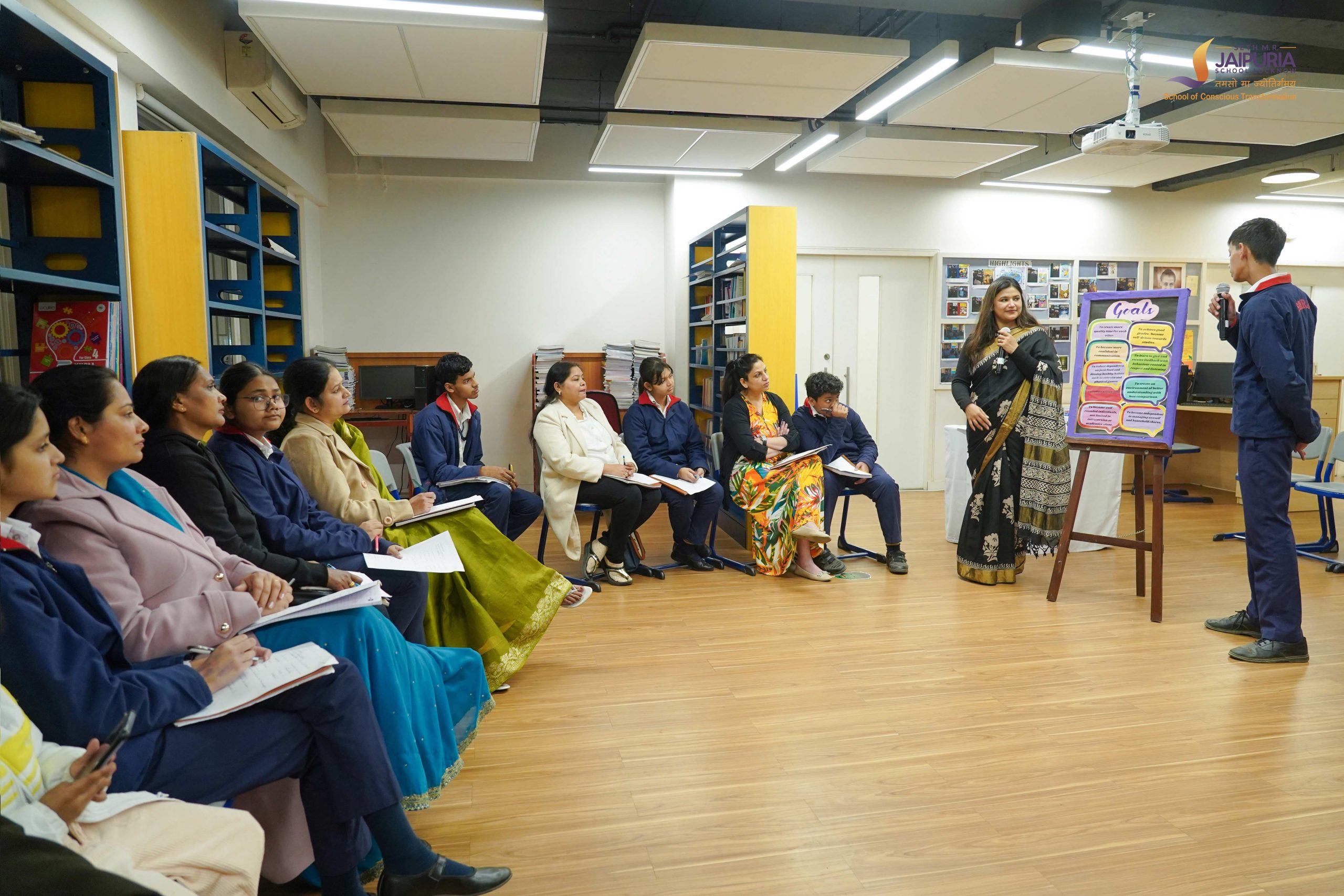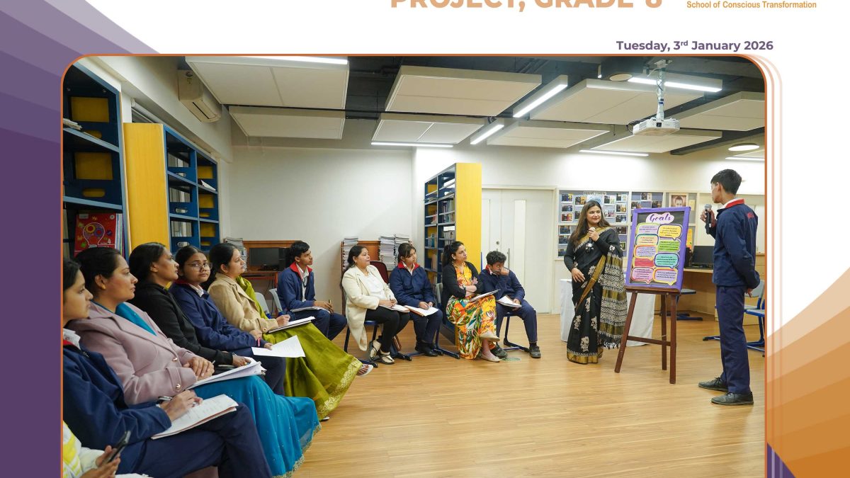 The Personal Transformation Project Presentations were recently held at Seth M.R. Jaipuria School over a thoughtful and engaging week on campus. The initiative involved 8th grade students and focused on encouraging them to look within and work on areas they felt needed personal change. With this objective at its core, the presentations were conducted across different spaces within the school.