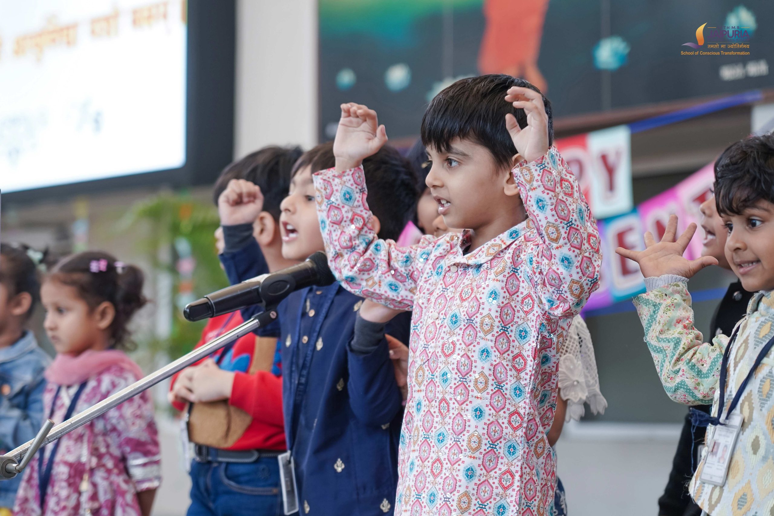 The morning began with a heartfelt play by teachers titled Grandma’s Magical Glasses. The story followed a grandmother whose magical glasses could reveal the emotions people carried inside, from unspoken joys to the child still alive within every adult heart. When her grandchild asked to try them, she gently explained that children have no need for such glasses. They already see through love and innocence, naturally finding purity in everyone around them. The message was simple yet powerful.