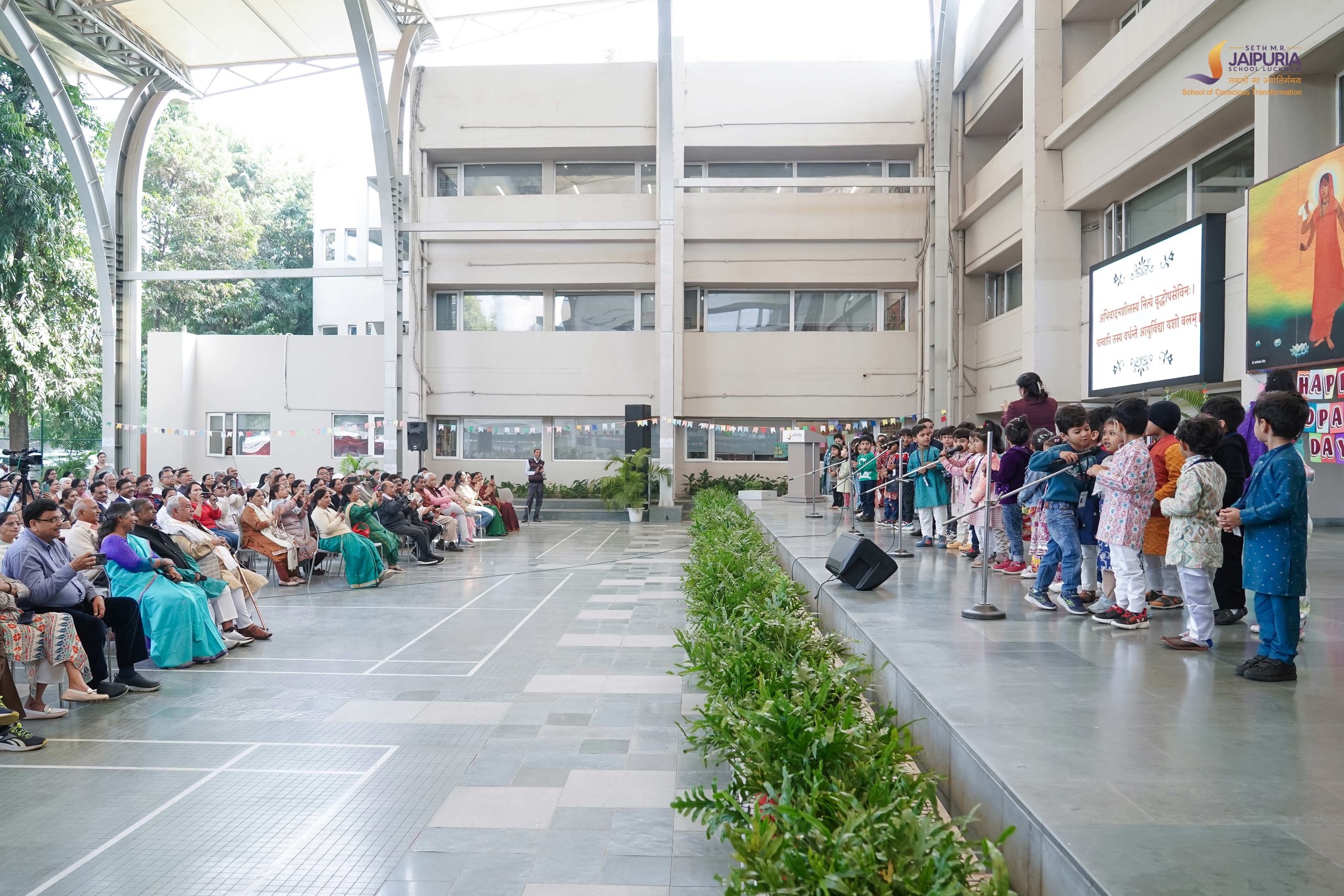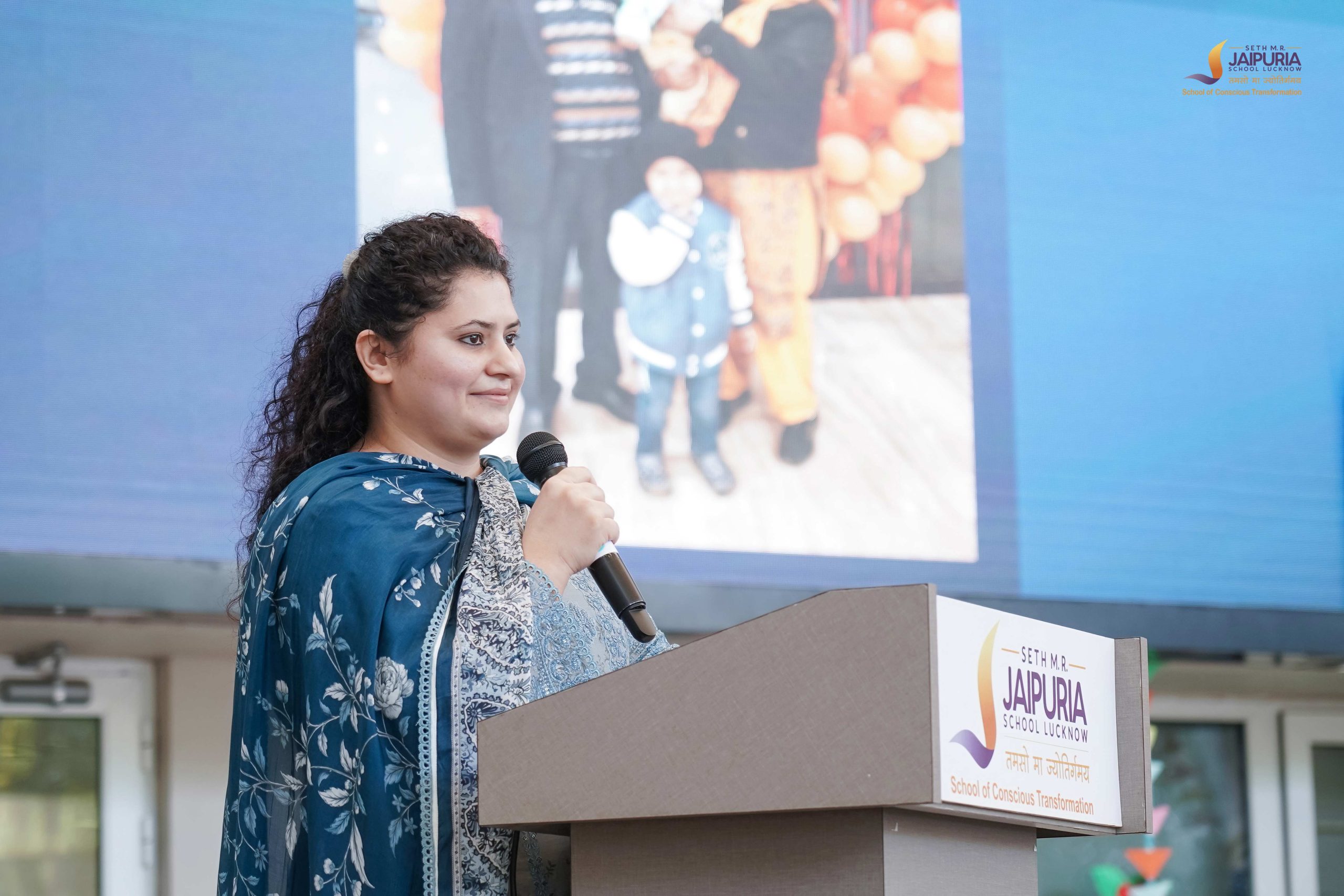 During her address, Principal Mrs. Promini Chopra spoke about the power of love in shaping a child’s growth. “Think about Virat Kohli or Dhoni, when they walk onto the field, their thought is not just about winning. It is about enjoying the game completely. That sheer joy of doing what you love is what raises you to excellence. And that is exactly what we want for our Jaipurians, to grow in love, in joy, and in emotional strength.”