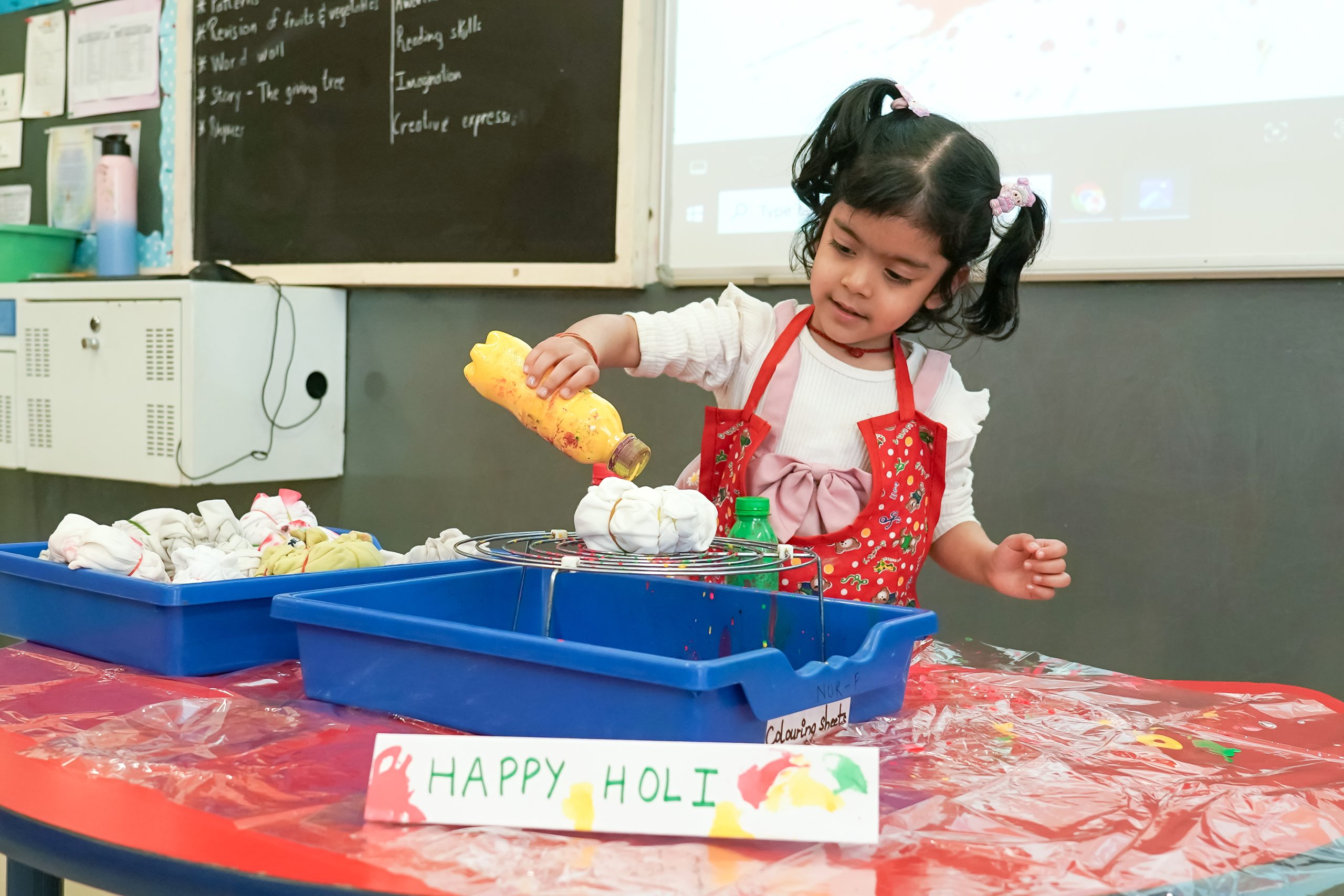 In another part of the school, the little ones gathered in the activity room to listen to the story behind the festival. Through the tale of Holika Dahan, they were introduced to the meaning of Holi and the message it carries about the triumph of good over evil.