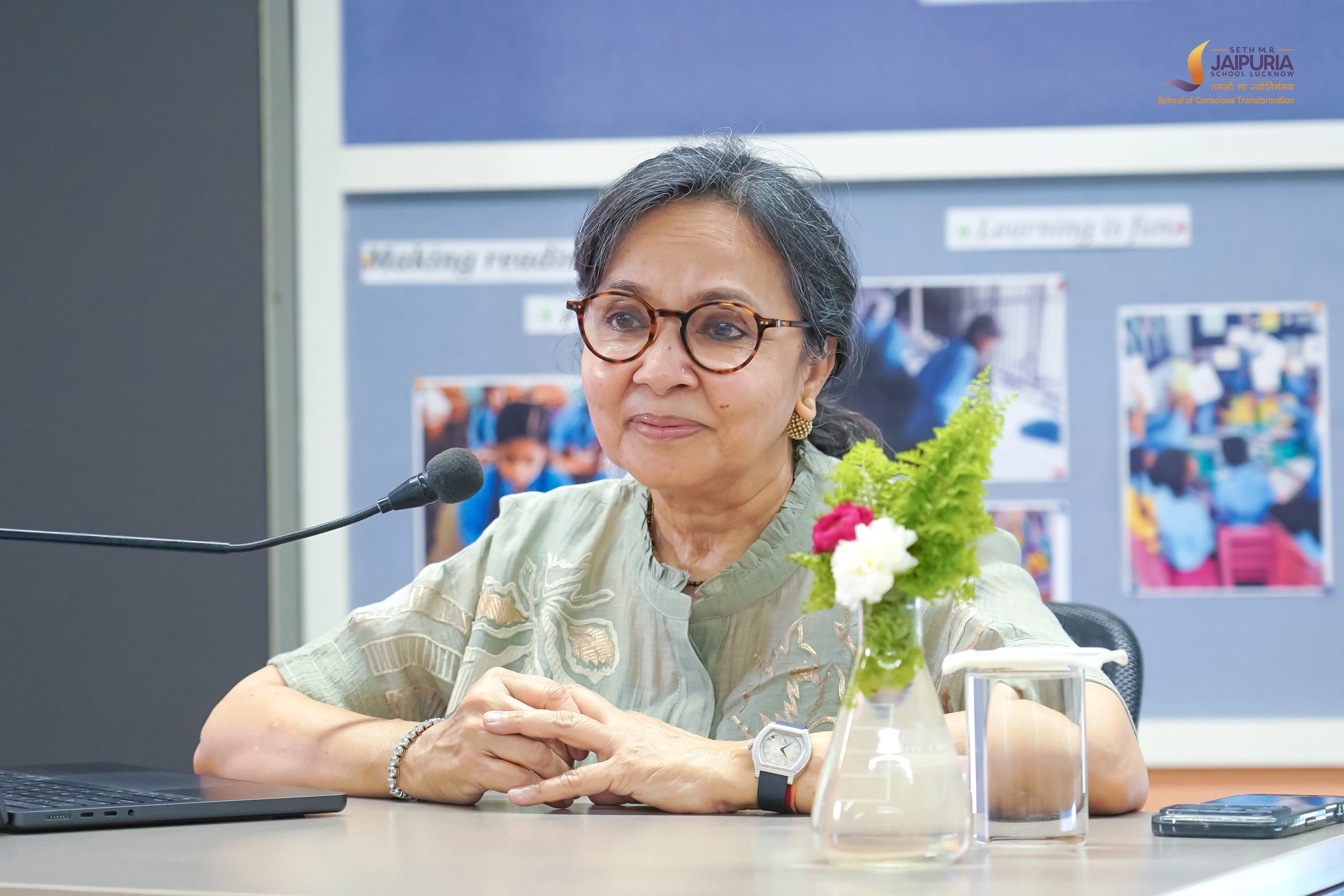Referring to concerns about mental and emotional well-being, Mrs. Jaipuria Ma’am explained that the deeper challenge lies in losing touch with the inner self. “What is missing,” she noted, “is the connection with our inmost self. We are searching for joy outside, while the real source of joy is seated deep within ourselves.”