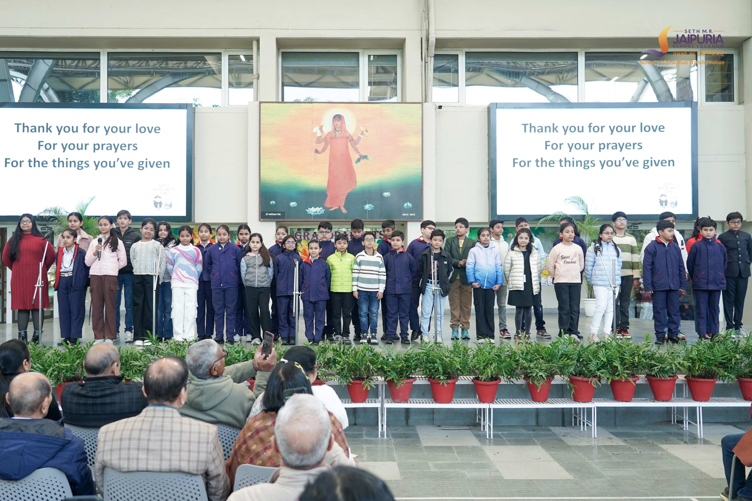 Addressing the gathering, Principal Mrs. Promini Chopra Ma’am, spoke about the larger purpose of education, emphasising, “We do not want to create a school where the only goal is for a child to become a doctor, an engineer or to earn a lot of money. Money is important for a standard of living, but if there are no moral values, there can be no beauty or peace in life. You cannot feel content or satisfied until you are rooted in values.”