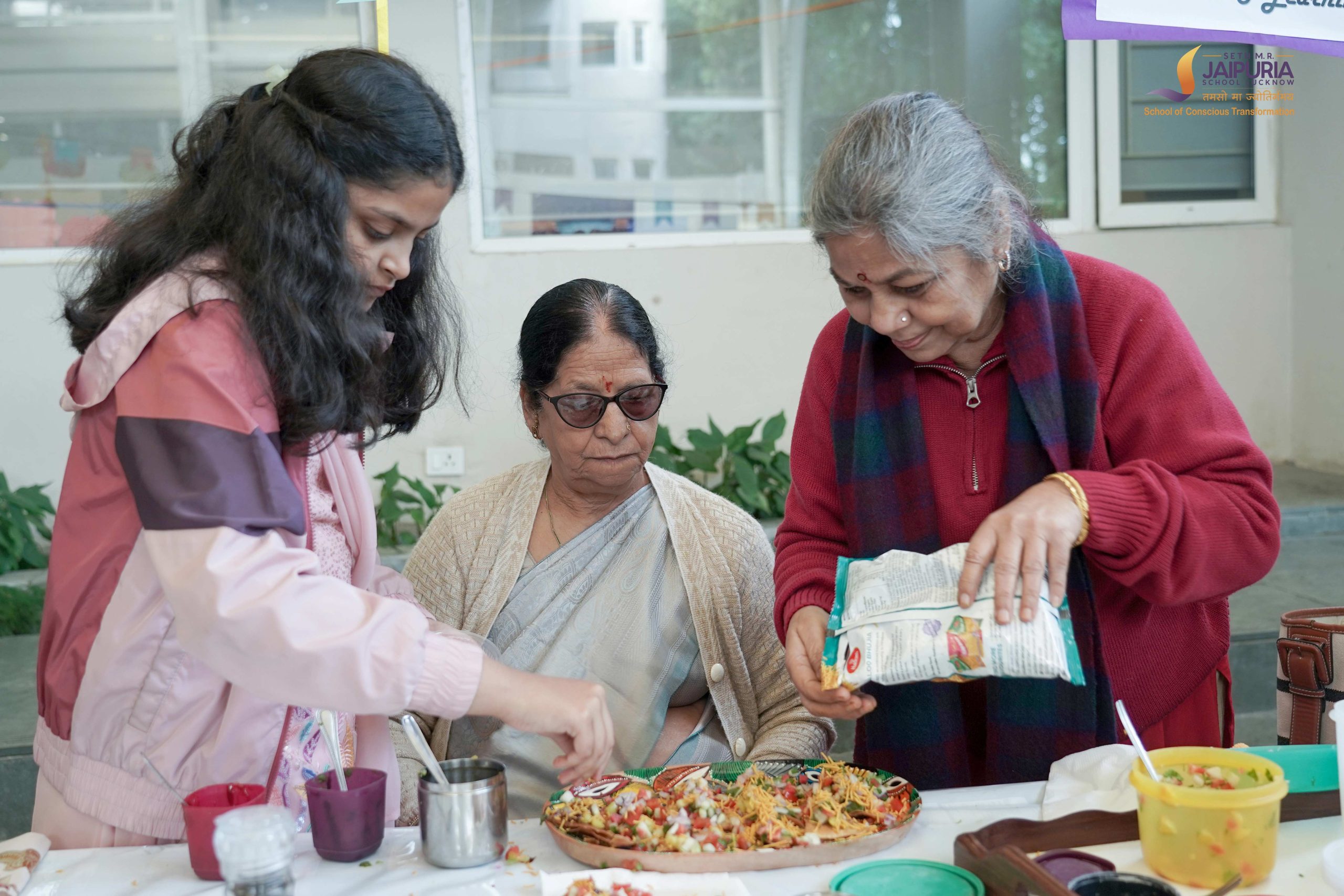 The celebration concluded with collaborative activities that brought Students closer to their grandparents. Grandparents and grandchildren participated in non-fire cooking, preparing dishes like pasta, bhel, corn chaat and rasmalai together. The ramp walk added a joyful touch, with several grandparents confidently joining their grandchildren on stage, turning the moment into a shared celebration of love and companionship.